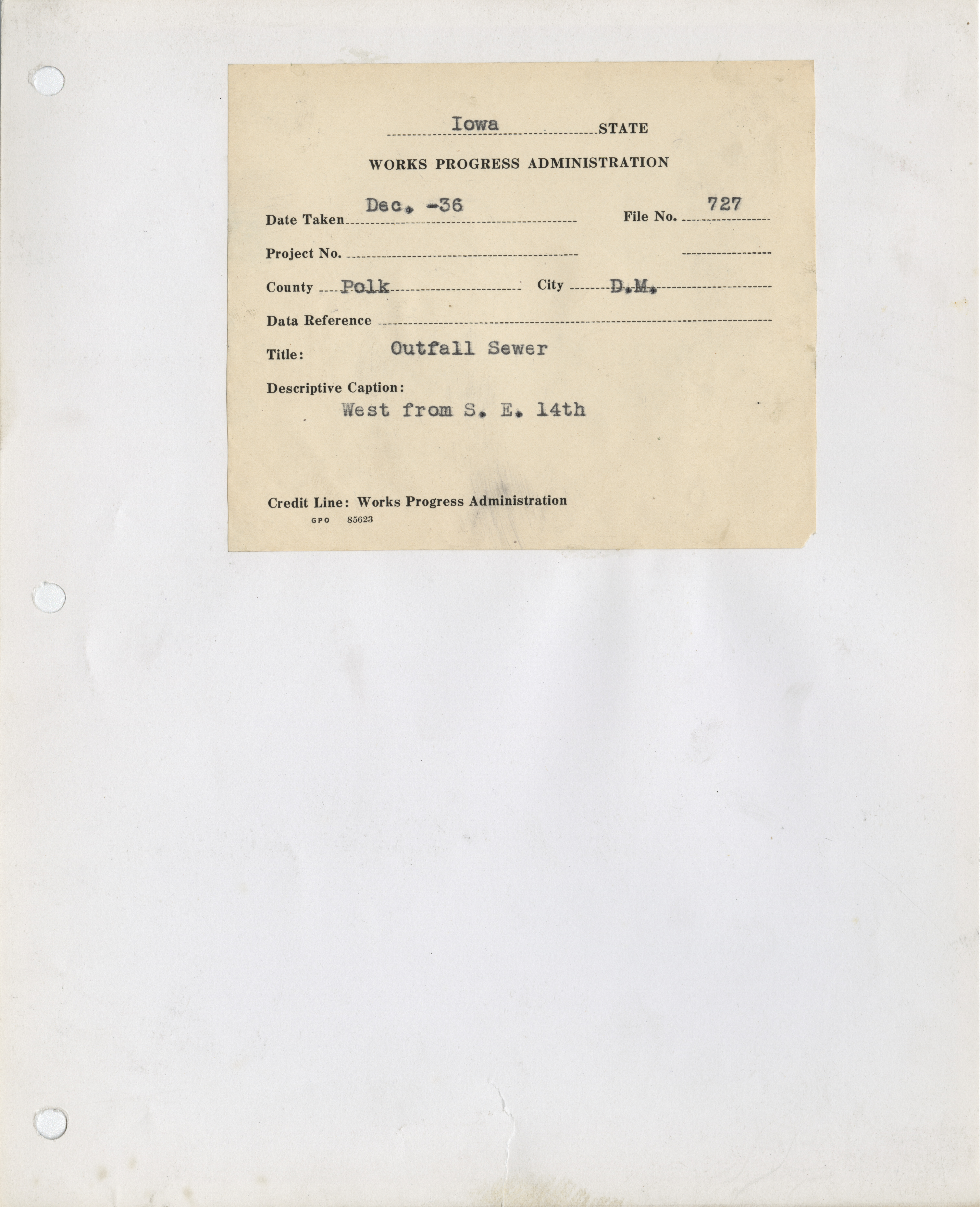 - "Photograph of people constructing an outfall sewer at SE 14th St. in Des Moines", Work Projects Administration (Iowa) Photographs, Iowa State University Library Digital Collections