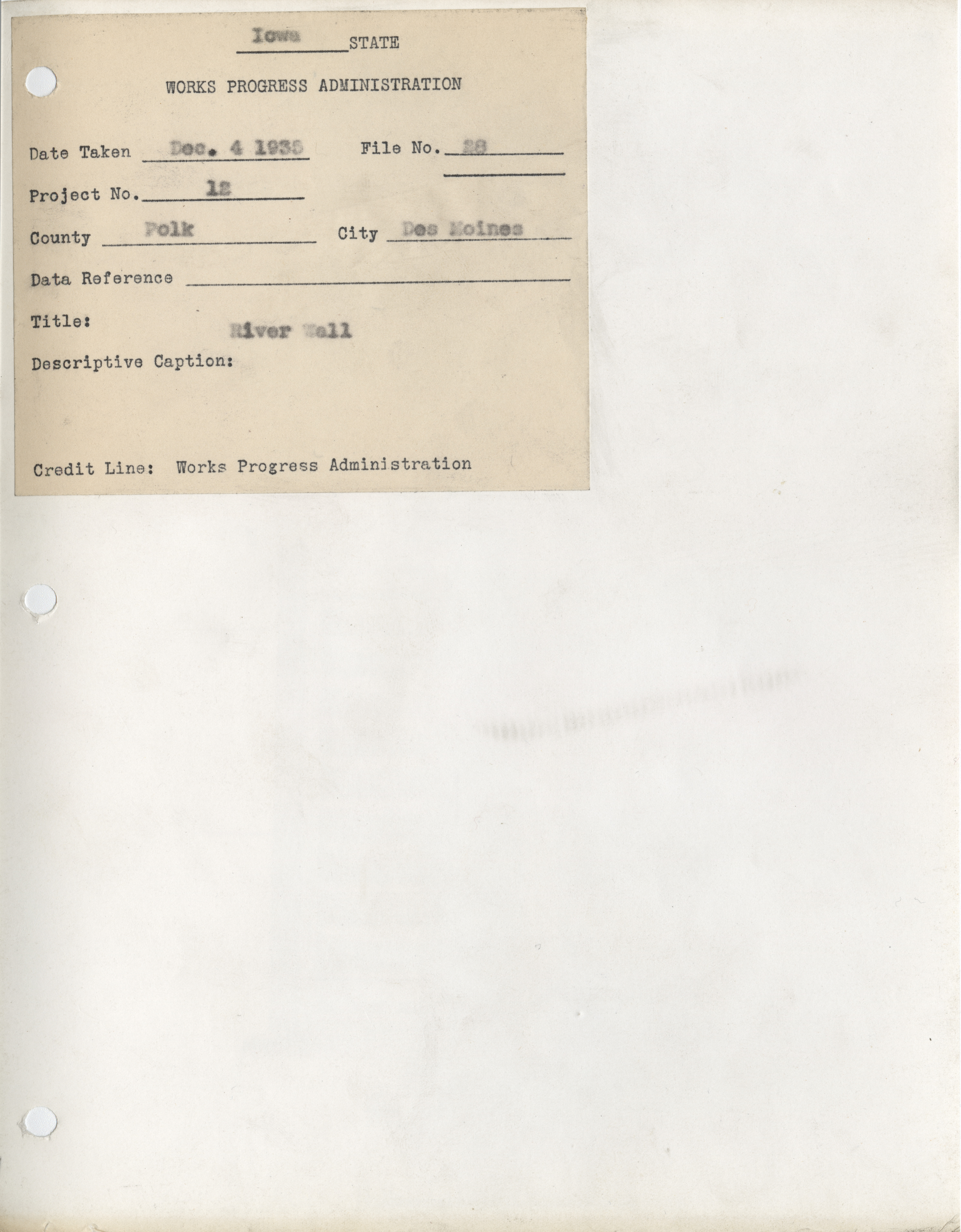- District 4. Polk County. Des Moines. River Wall. Project 12. (9 b/w photographs), 1936, undated