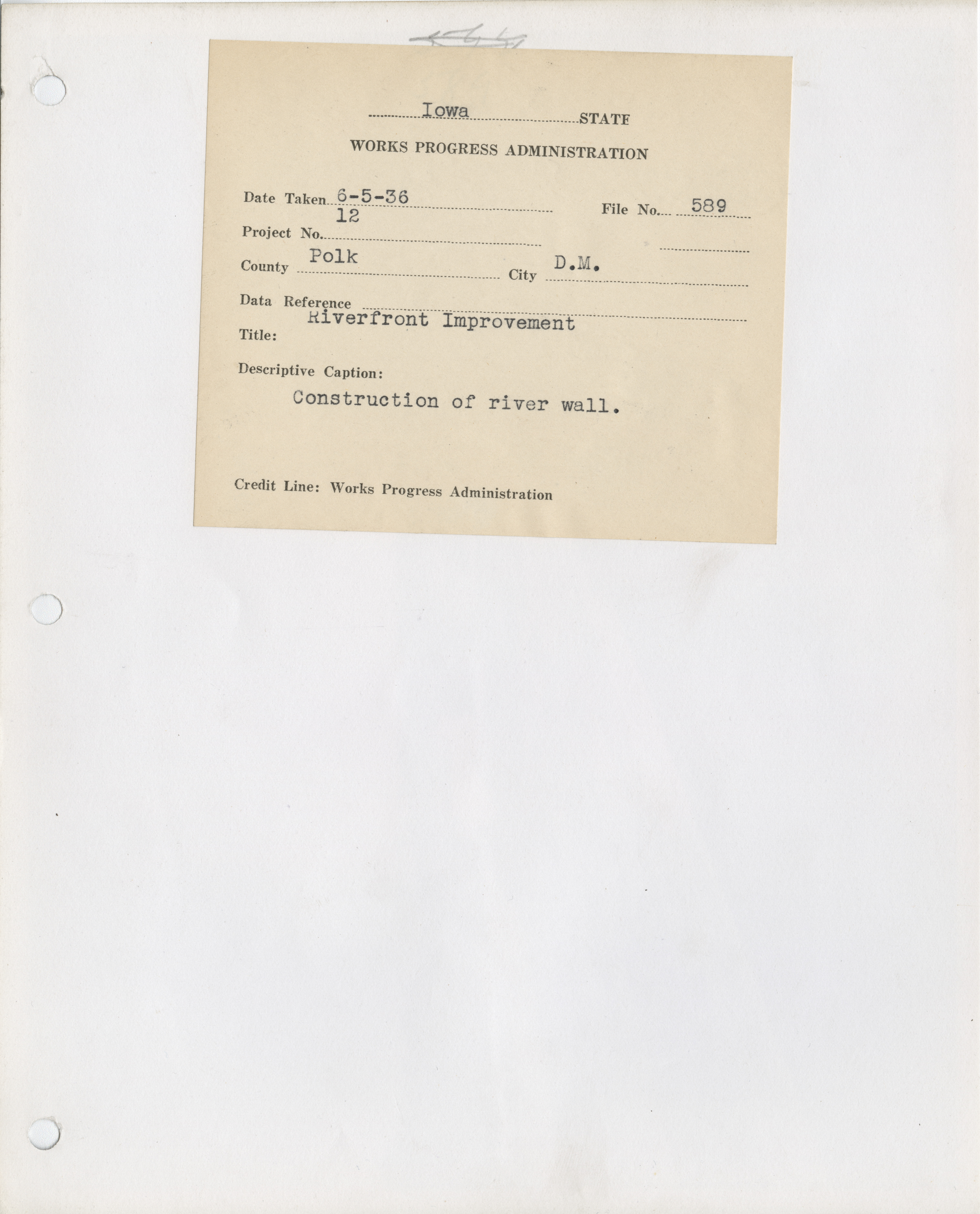 - District 4. Polk County. Des Moines. River Wall. Project 12. (9 b/w photographs), 1936, undated