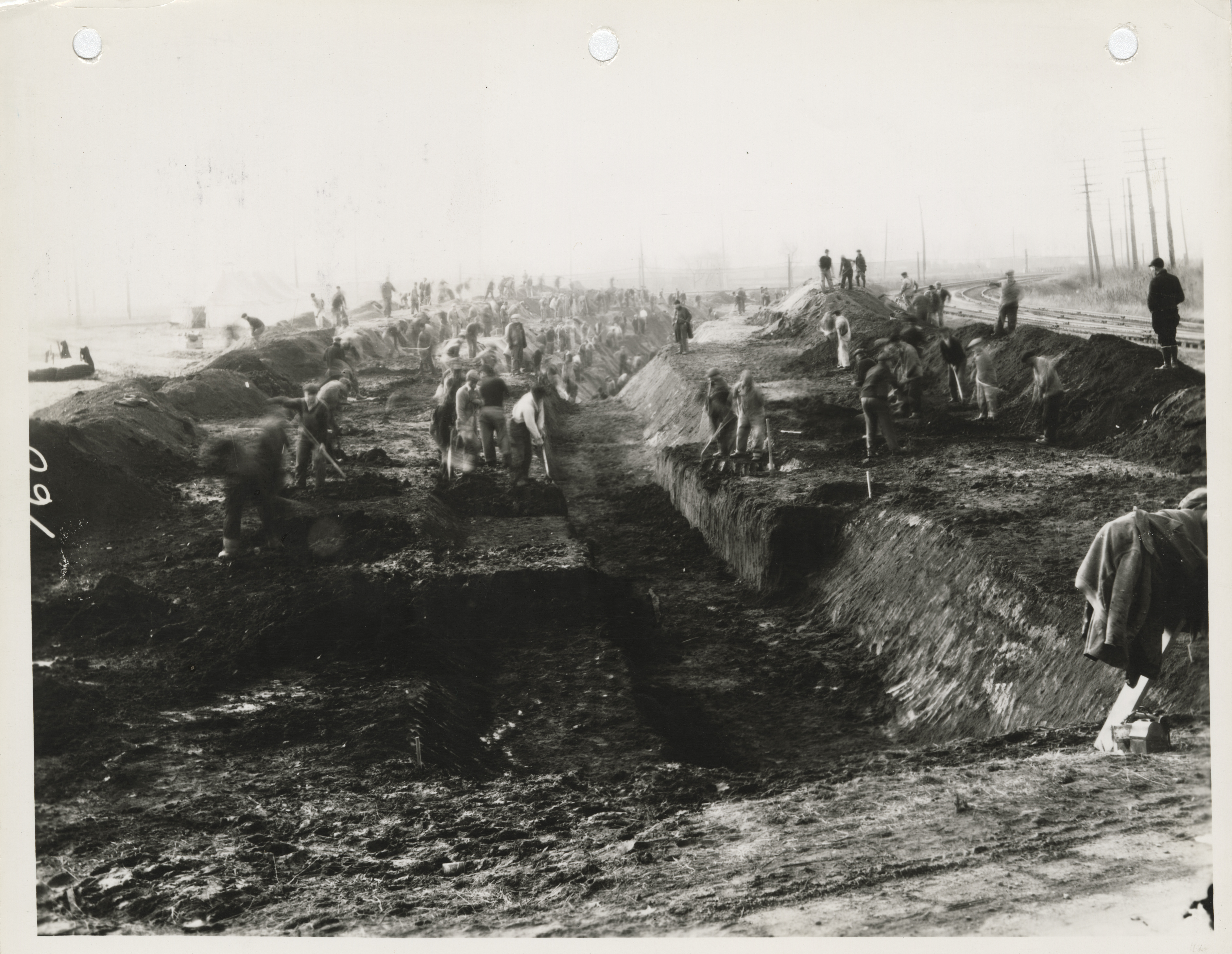 - "Photograph of people constructing a sanitary and storm sewer at E 18th and Dean Ave. in Des Moines", Work Projects Administration (Iowa) Photographs, Iowa State University Library Digital Collections