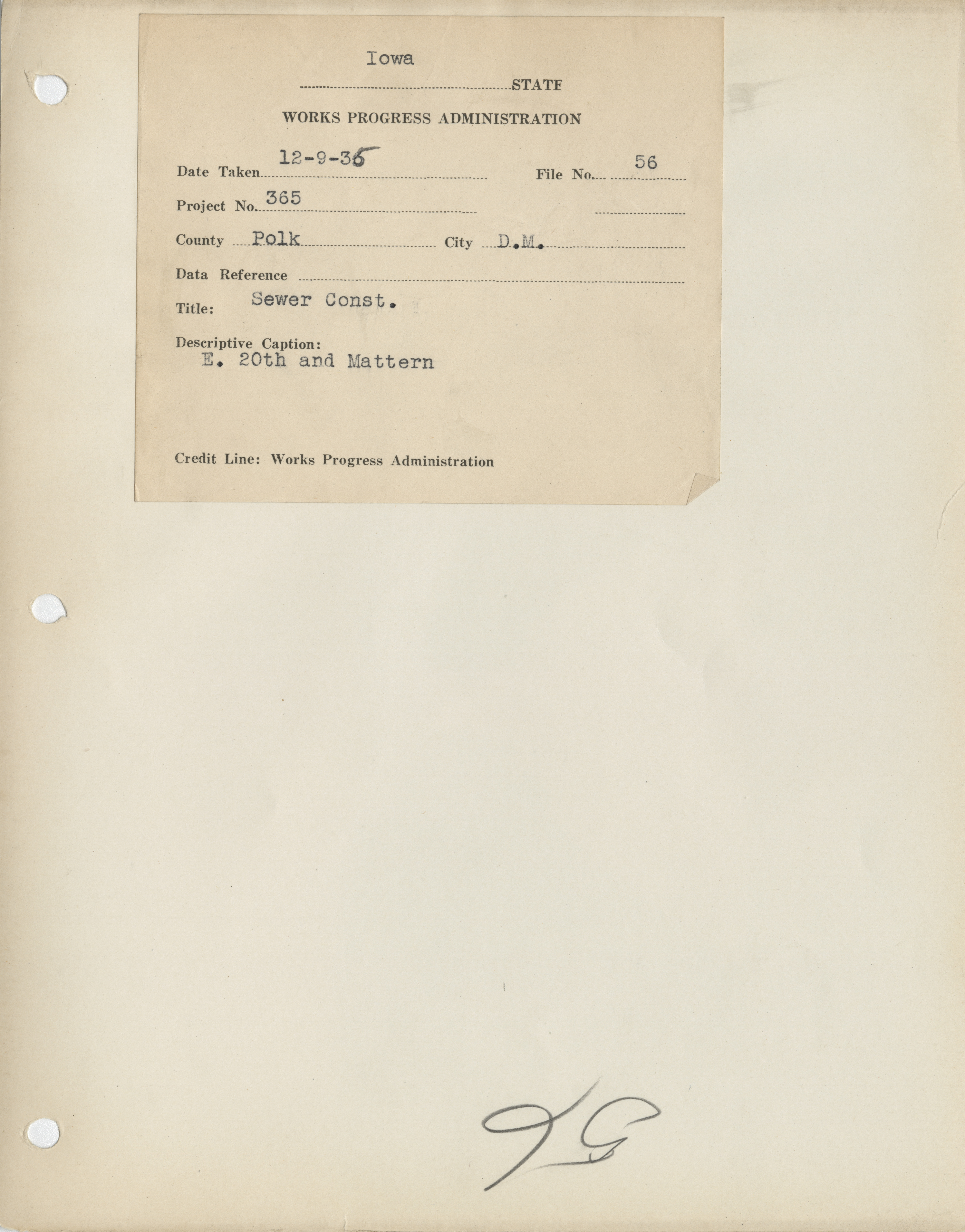 - "Photograph of sewer construction at E 20th and Mattern Ave. in Des Moines", Work Projects Administration (Iowa) Photographs, Iowa State University Library Digital Collections