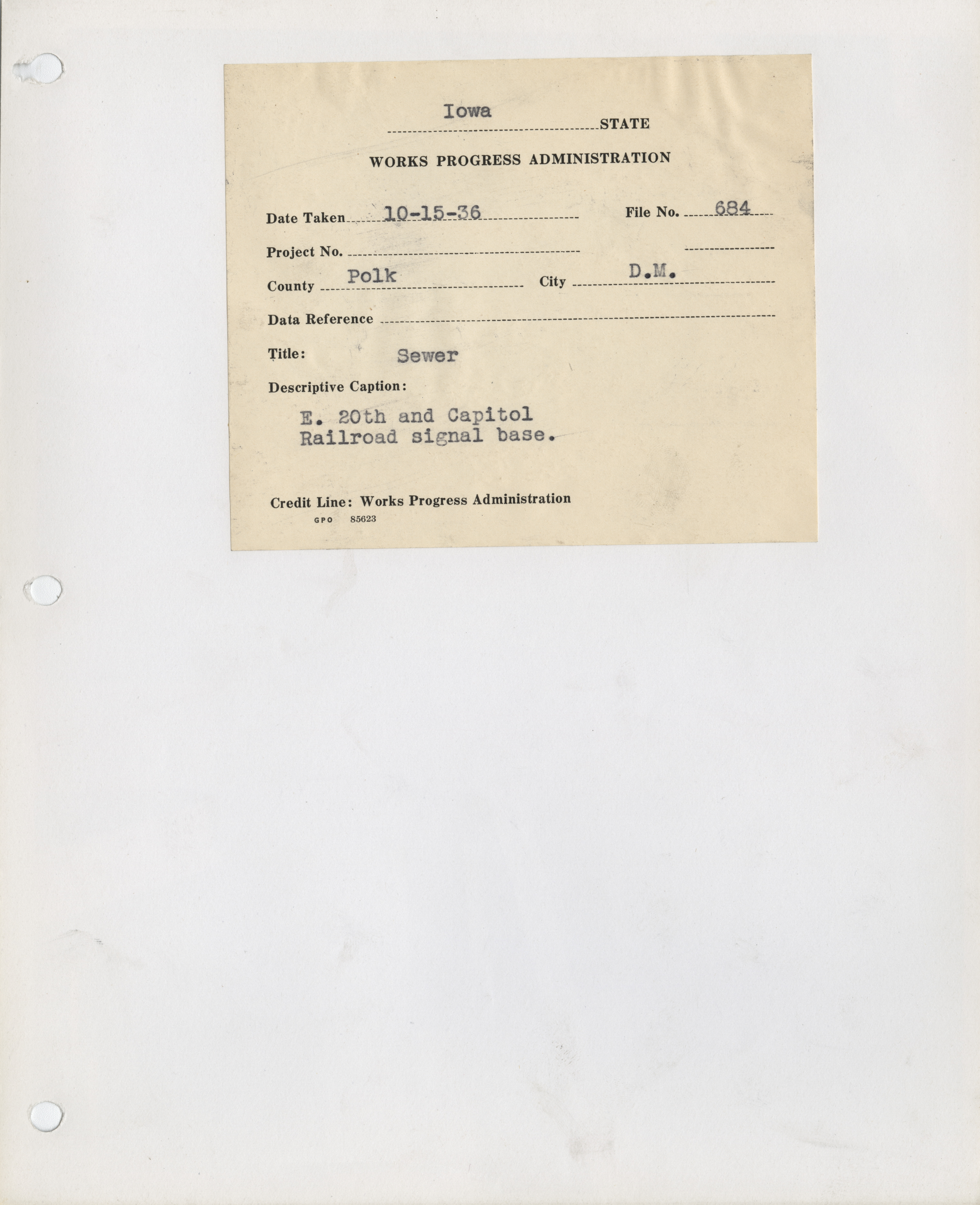 - "Photograph of a railroad signal base at E 20th and Capitol in Des Moines", Work Projects Administration (Iowa) Photographs, Iowa State University Library Digital Collections
