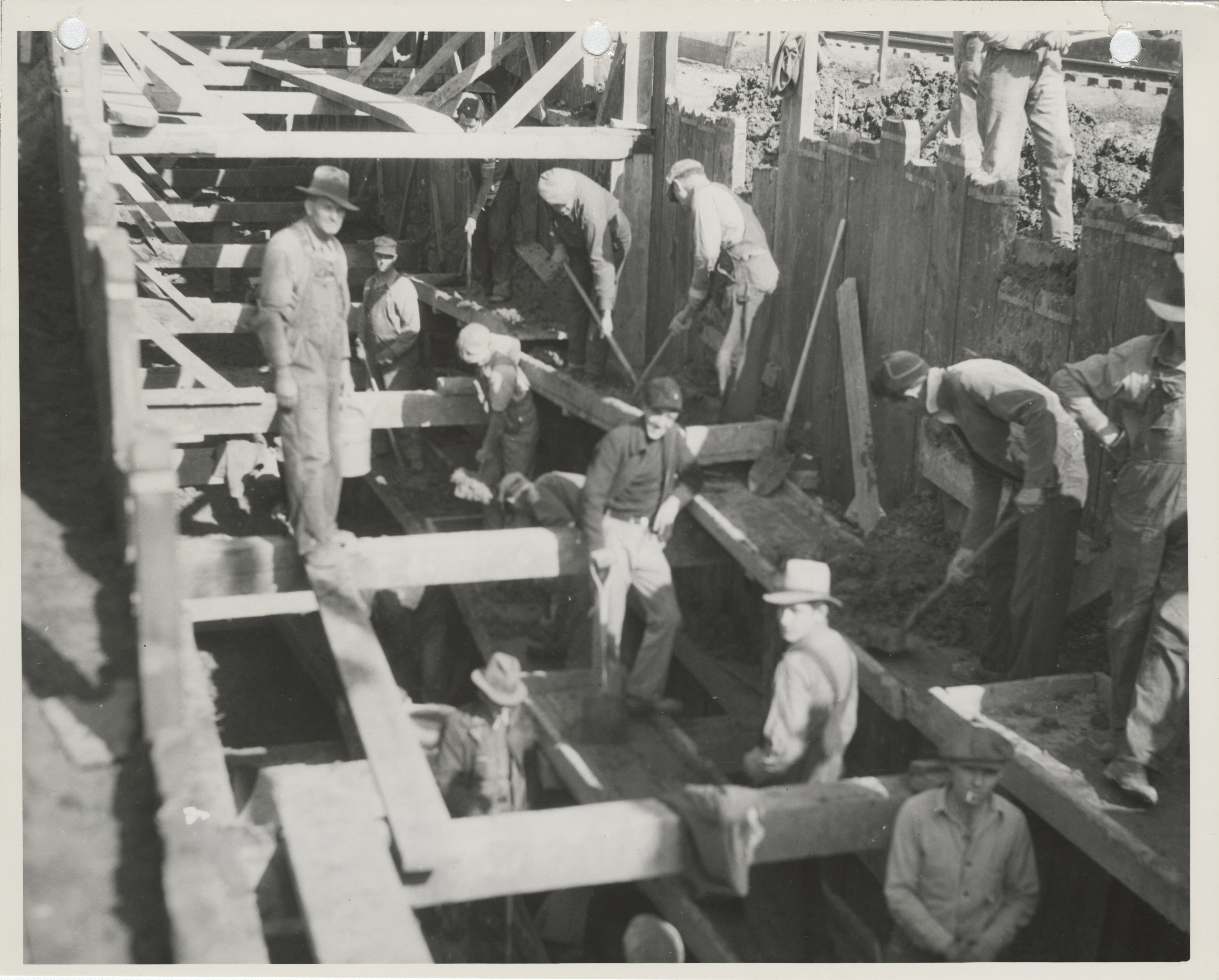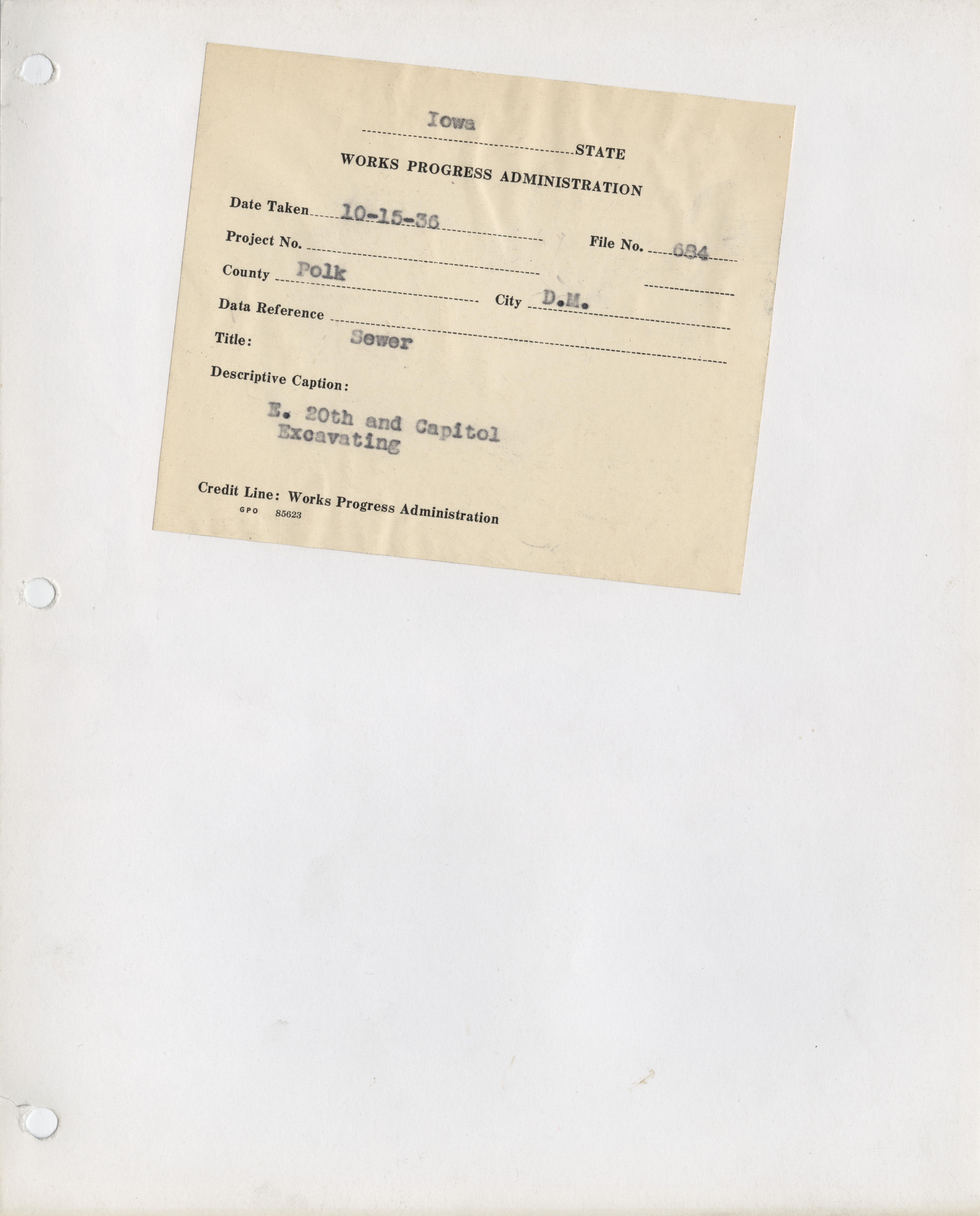 - "Photograph of people excavating for a sewer at E 20th and Capitol in Des Moines", Work Projects Administration (Iowa) Photographs, Iowa State University Library Digital Collections