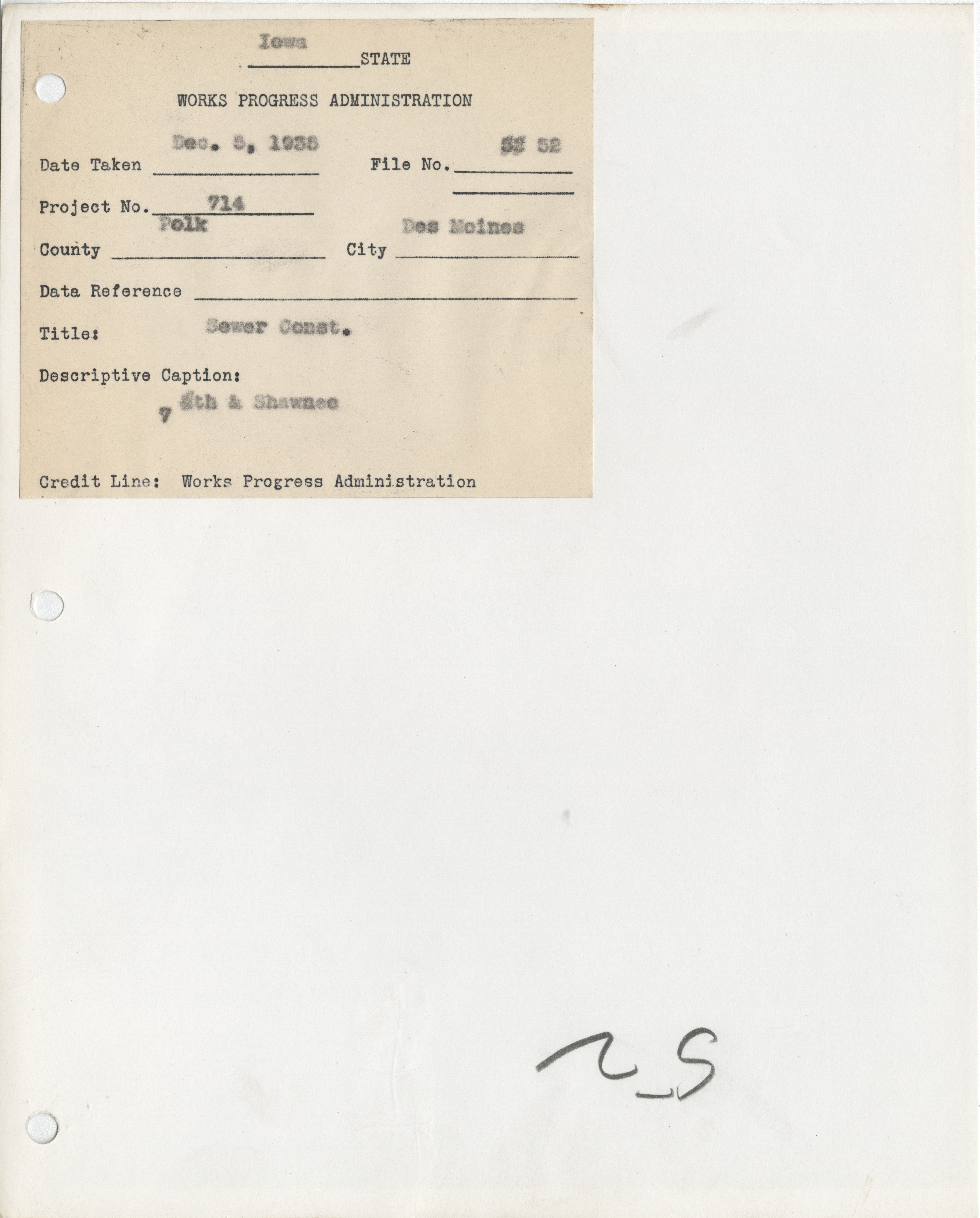 - District 4. Polk County. Des Moines. Sewer, 7th and Shawnee. Project 714. (1 b/w photograph), 1935