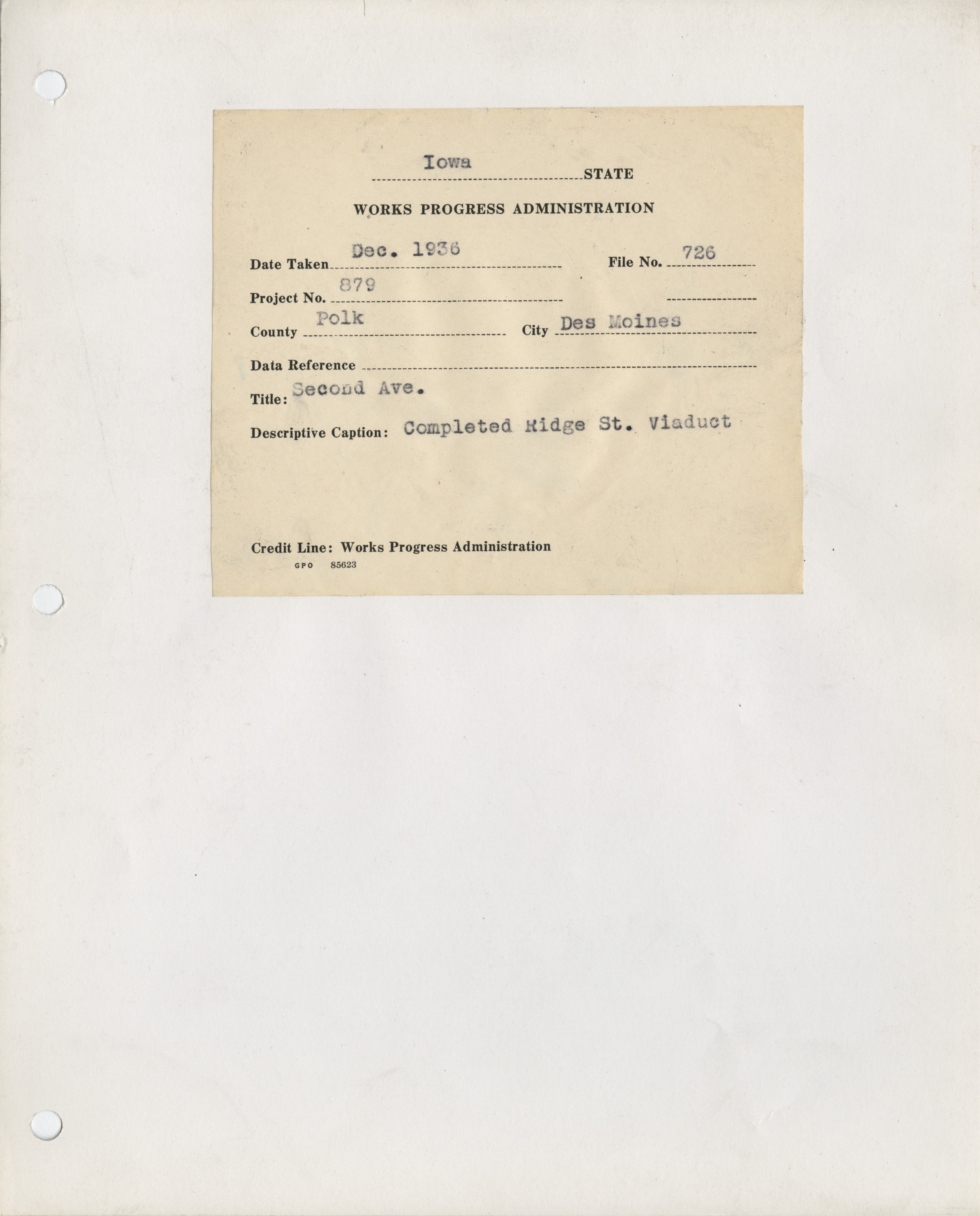 - "Photograph of the Ridge St. viaduct in Des Moines", Work Projects Administration (Iowa) Photographs, Iowa State University Library Digital Collections
