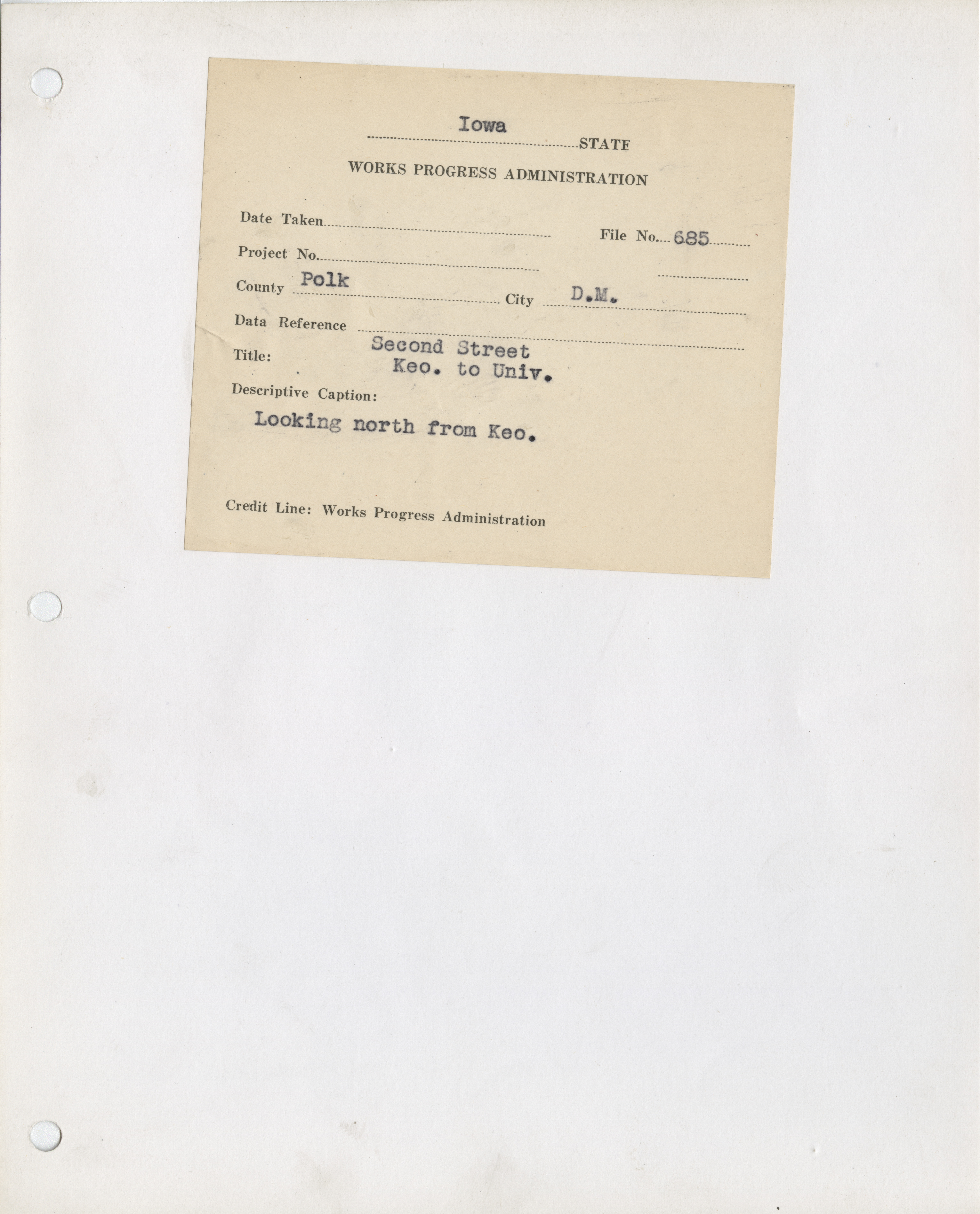 - "Photograph of Second Street looking north from Keosauqua in Des Moines", Work Projects Administration (Iowa) Photographs, Iowa State University Library Digital Collections