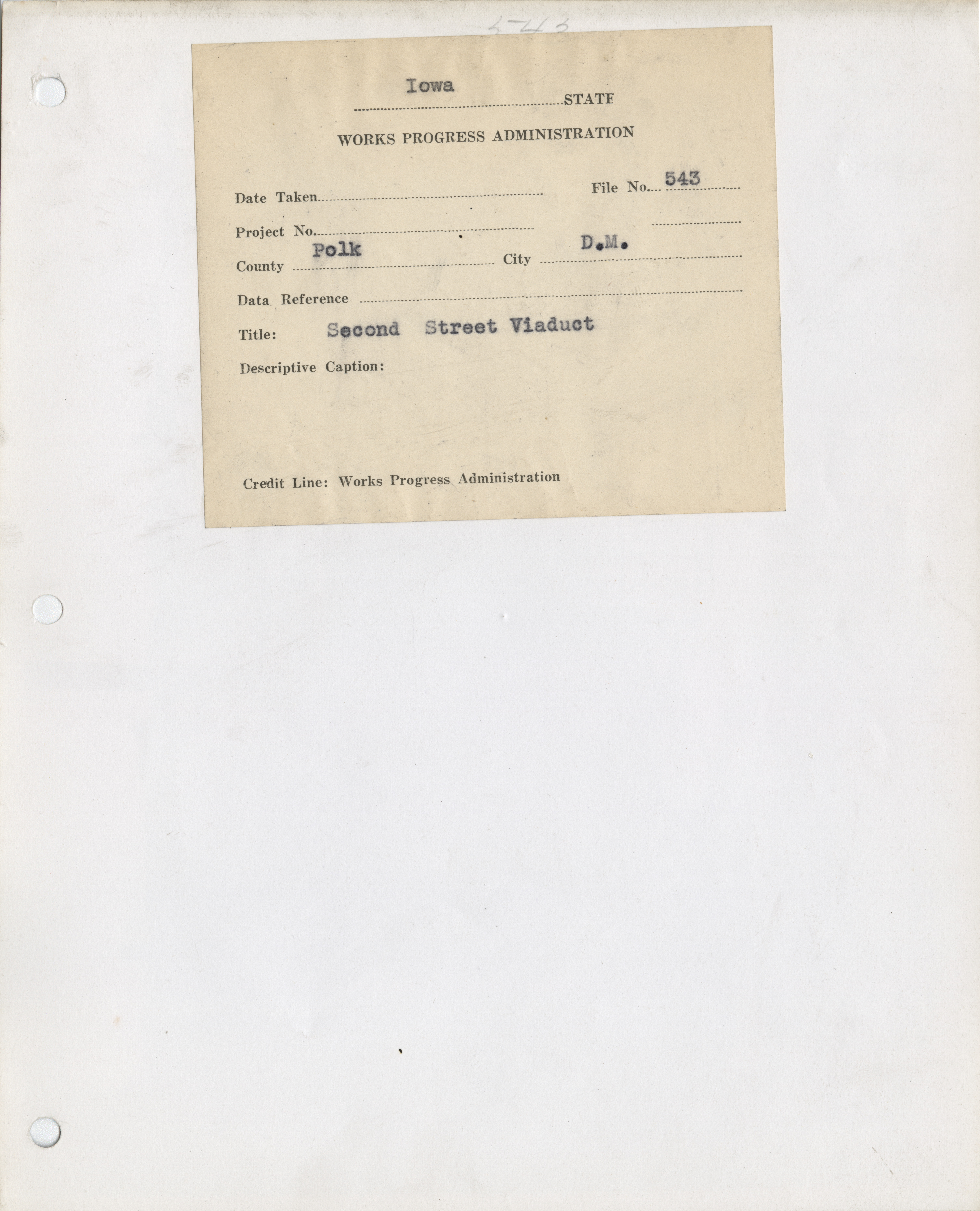 - "Photograph of the construction of the Second Street viaduct in Des Moines", Work Projects Administration (Iowa) Photographs, Iowa State University Library Digital Collections