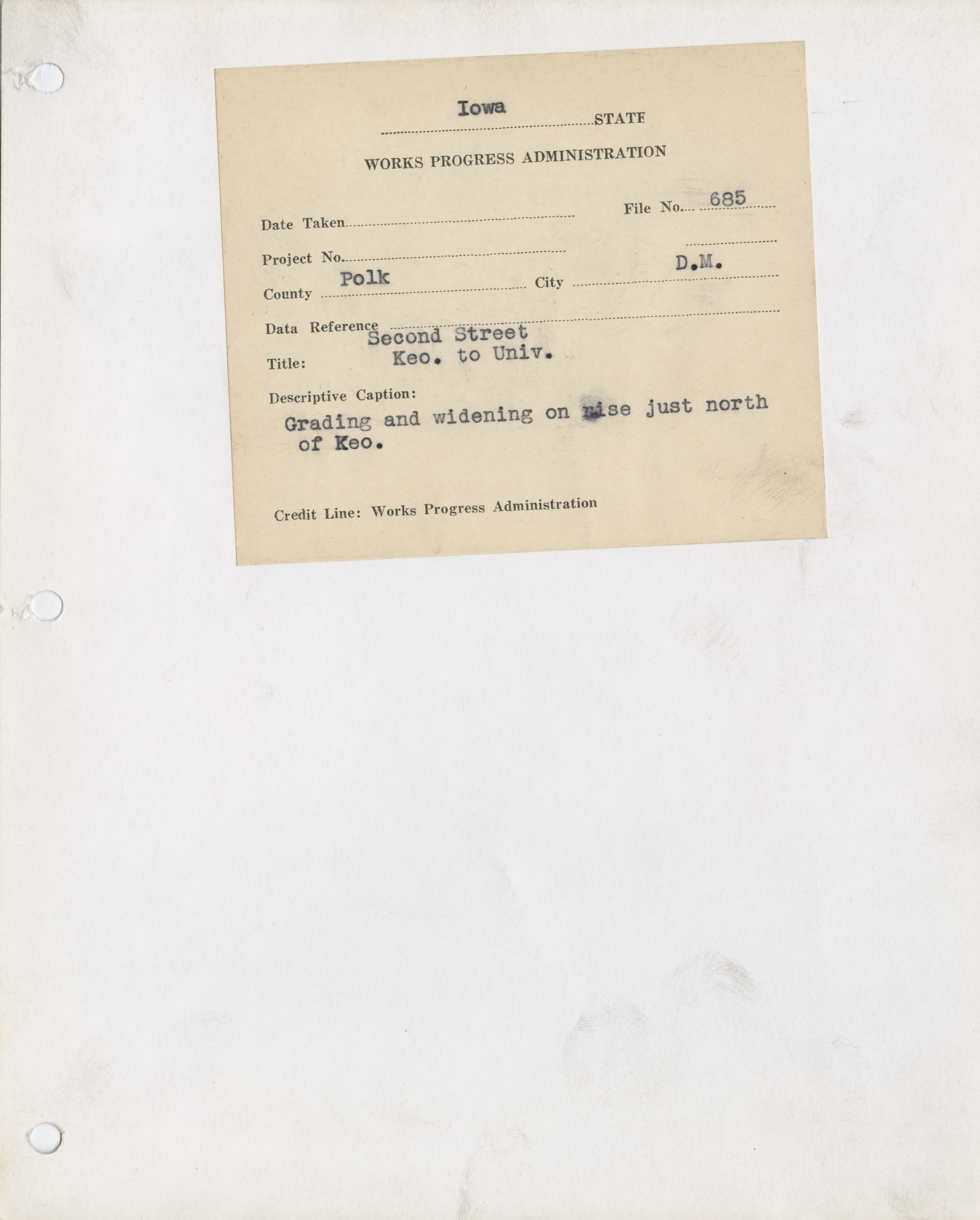 - "Photograph of grading and widening Second Street north of Keosauqua in Des Moines", Work Projects Administration (Iowa) Photographs, Iowa State University Library Digital Collections