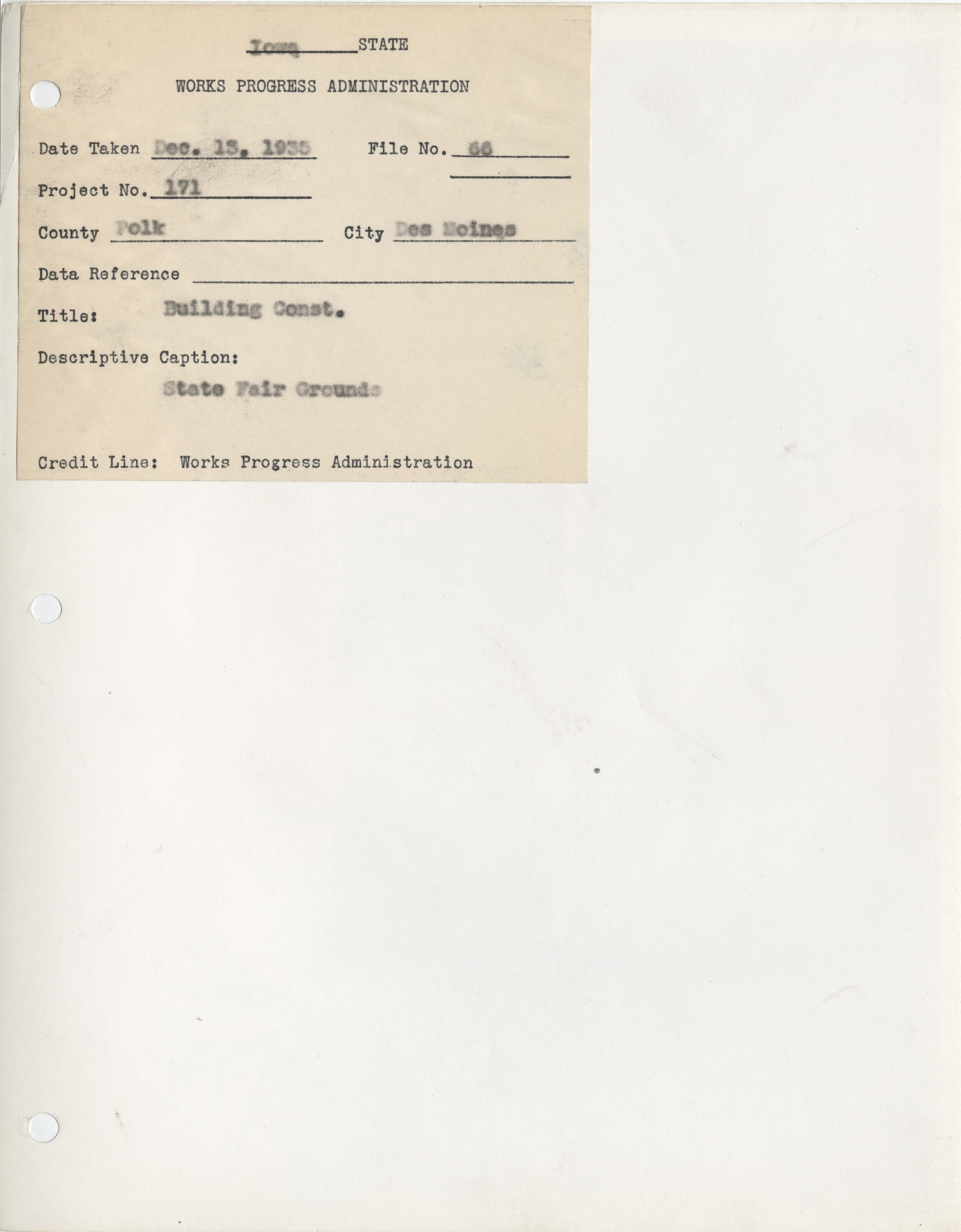 - "Photograph of construction at the State Fairgrounds in Des Moines", Work Projects Administration (Iowa) Photographs, Iowa State University Library Digital Collections
