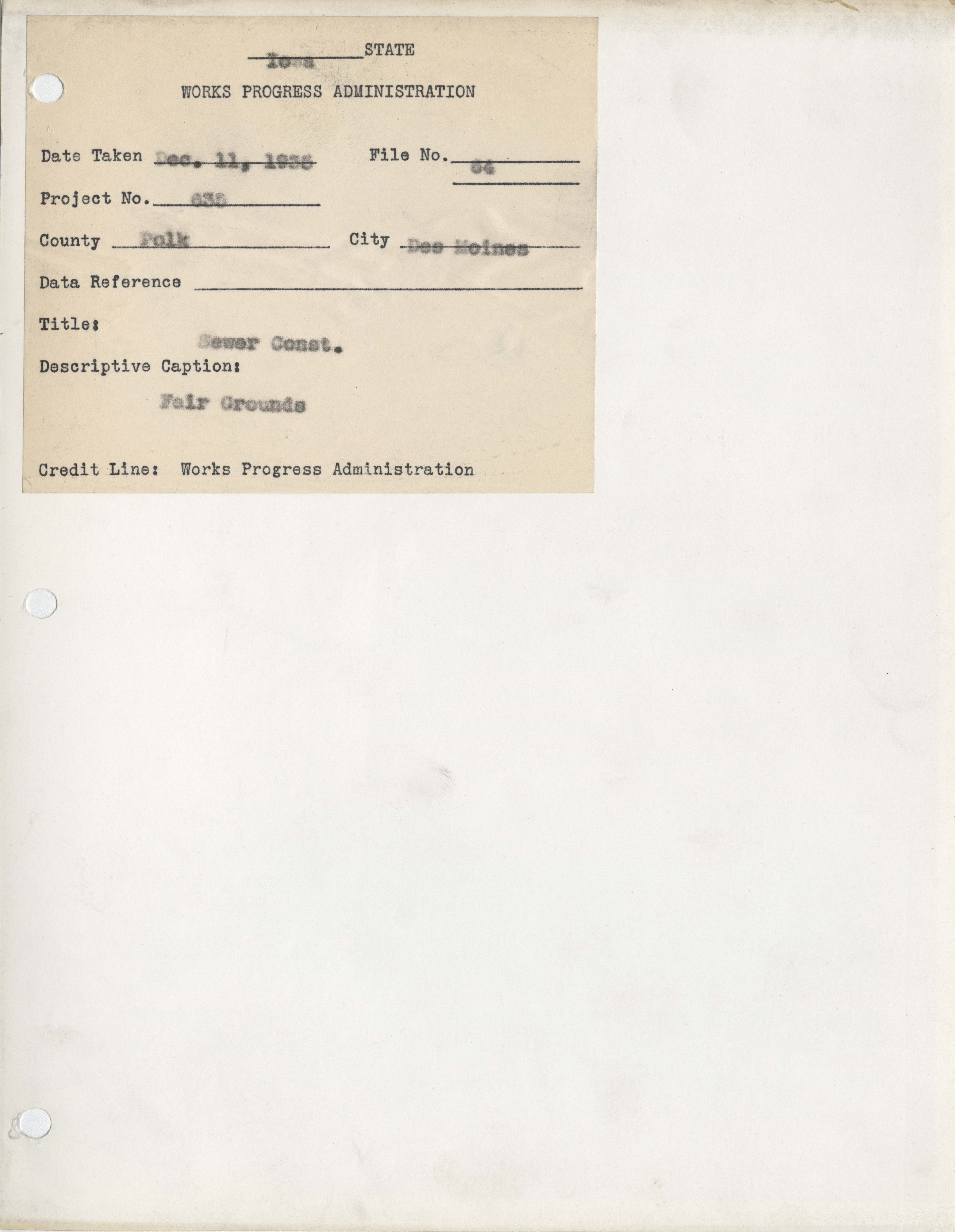 - "Photograph of sewer construction at the State Fairgrounds in Des Moines", Work Projects Administration (Iowa) Photographs, Iowa State University Library Digital Collections