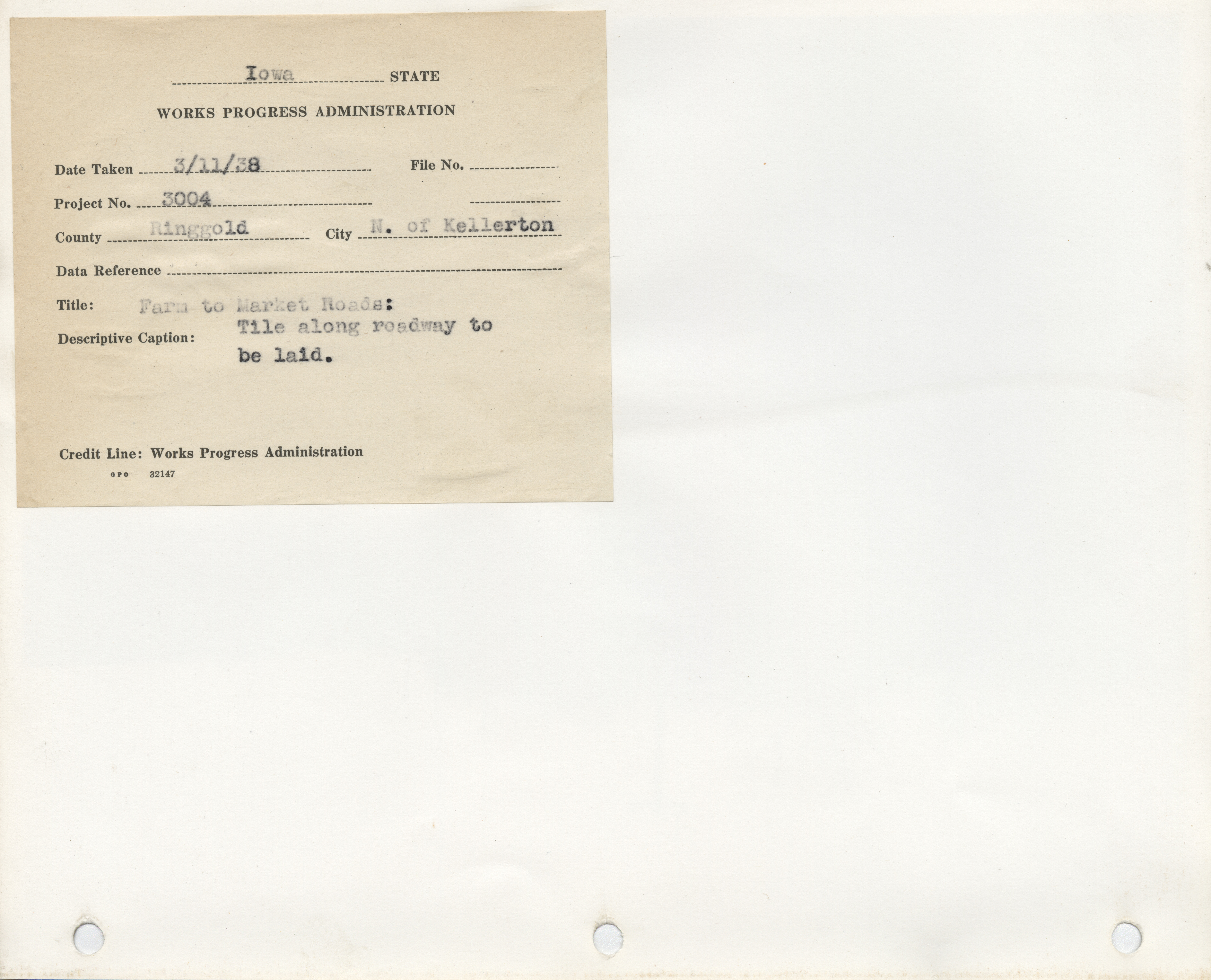 - "Photograph of drain tiles for a farm to market road in Ringgold County", Work Projects Administration (Iowa) Photographs, Iowa State University Library Digital Collections