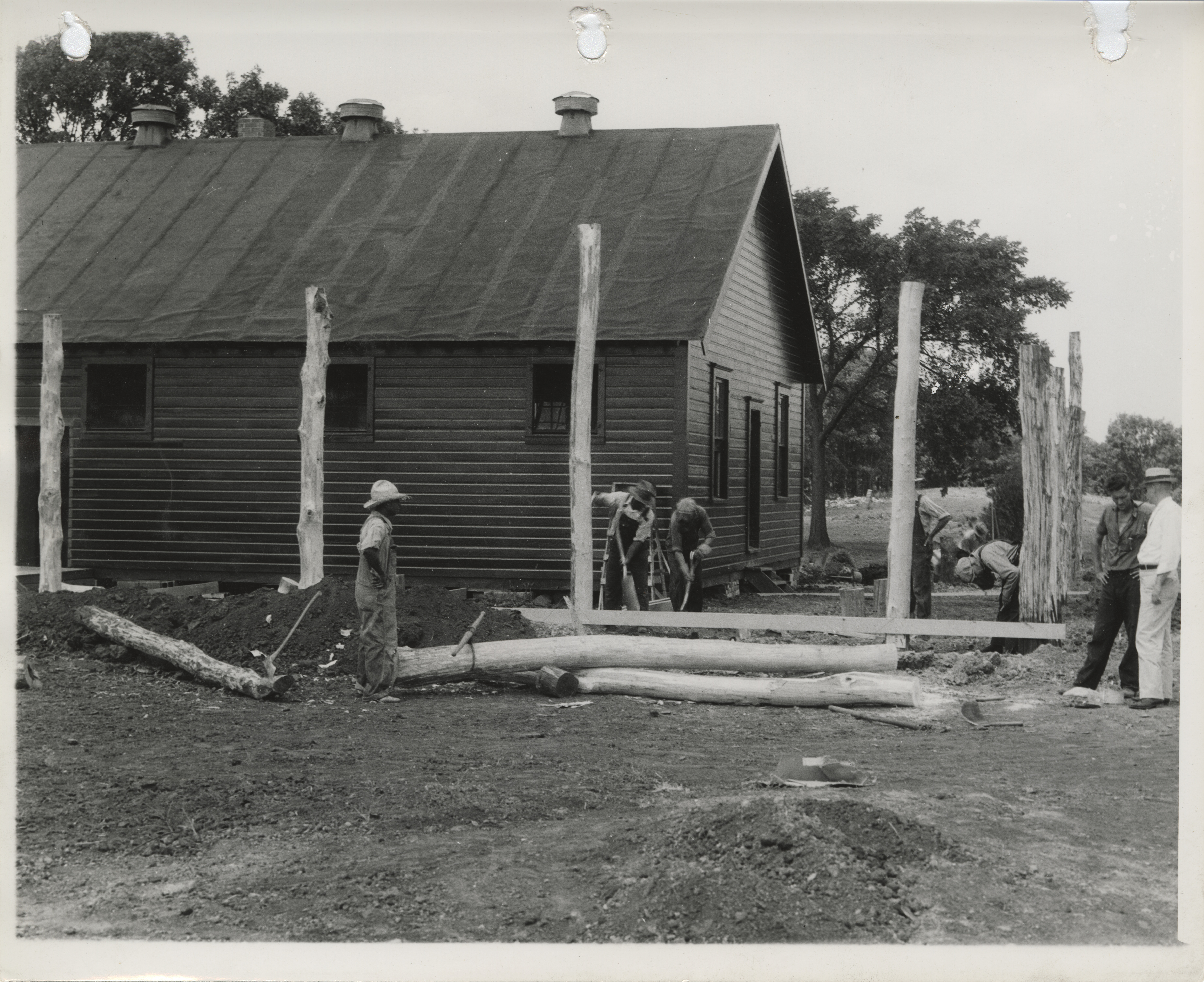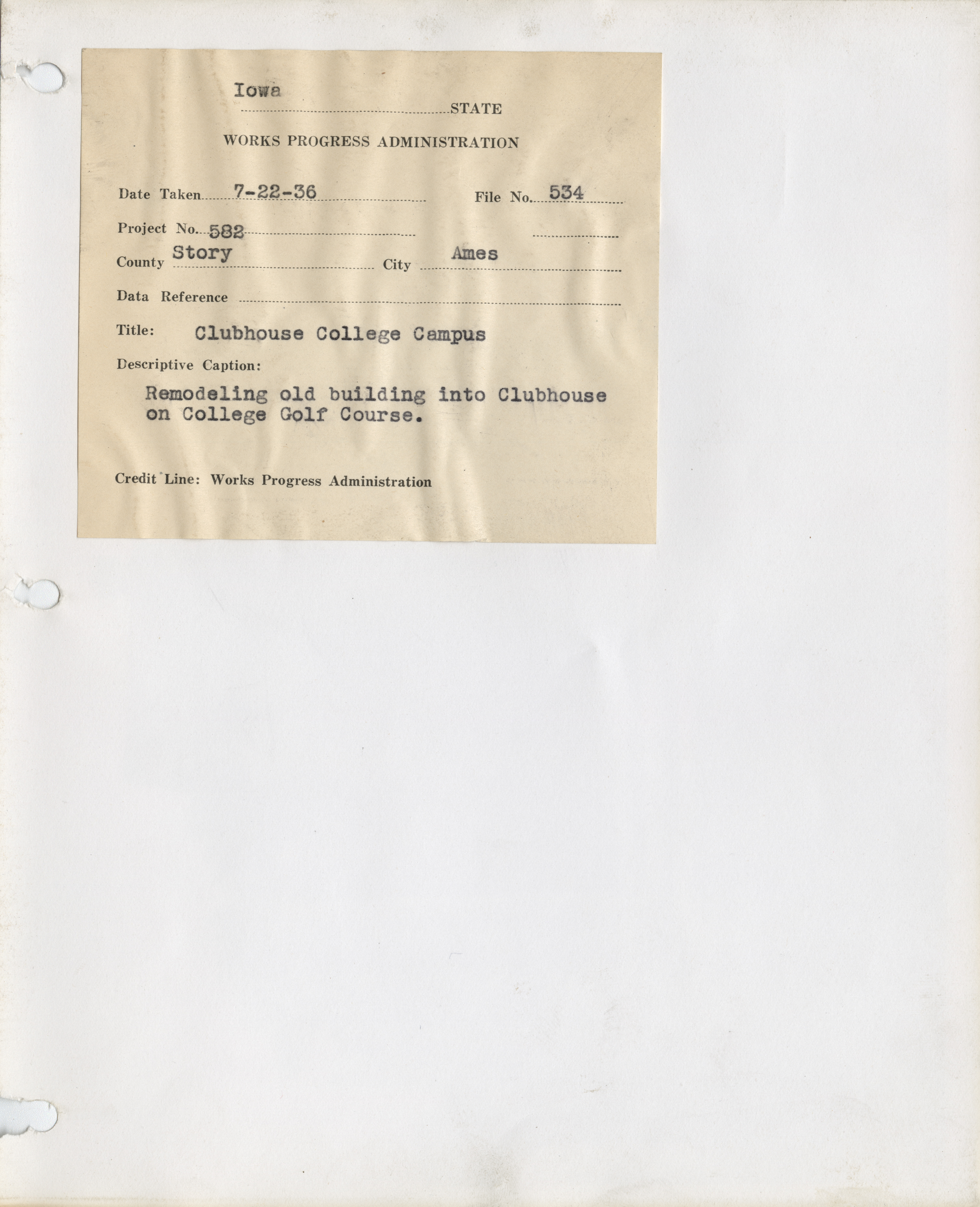 - "Photograph of people remodeling an old building into a clubhouse for the college golf course in Ames", Work Projects Administration (Iowa) Photographs, Iowa State University Library Digital Collections