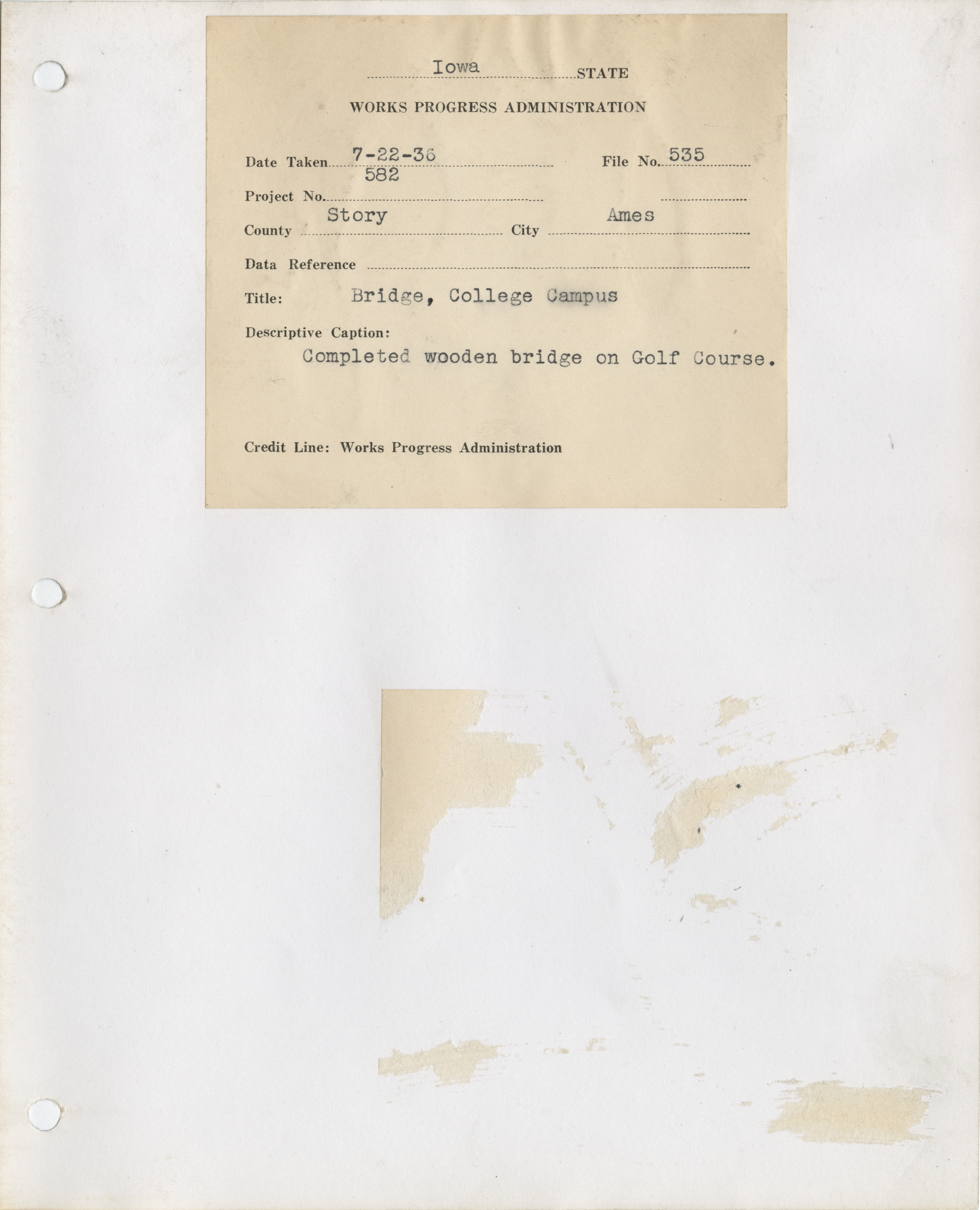 - "Photograph of a wooden bridge on the college golf course in Ames", Work Projects Administration (Iowa) Photographs, Iowa State University Library Digital Collections