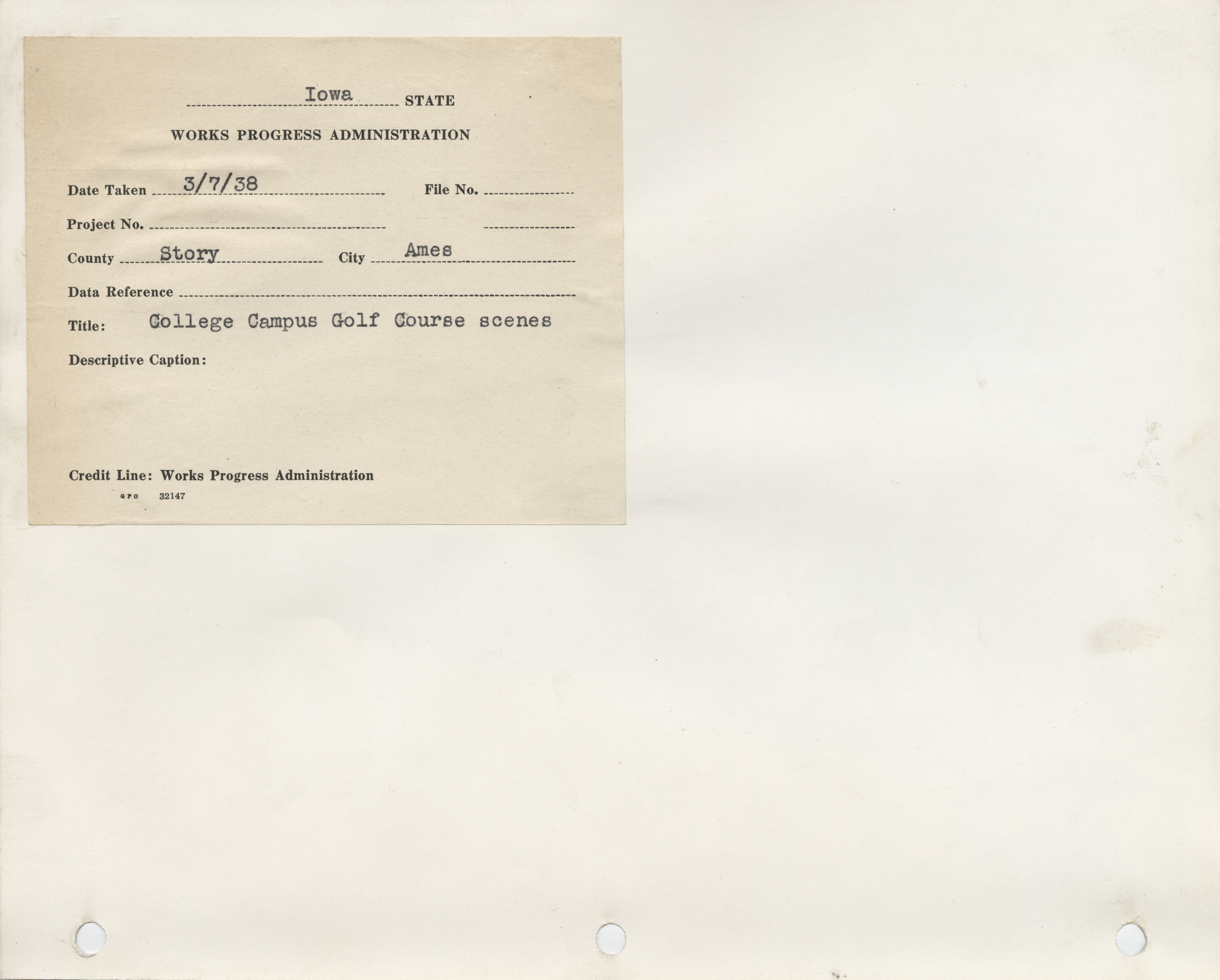 - District 4. Story County. Ames. College Golf Course, now Veenker Memorial Golf Course. Project 582. (11 b/w photographs), 1936