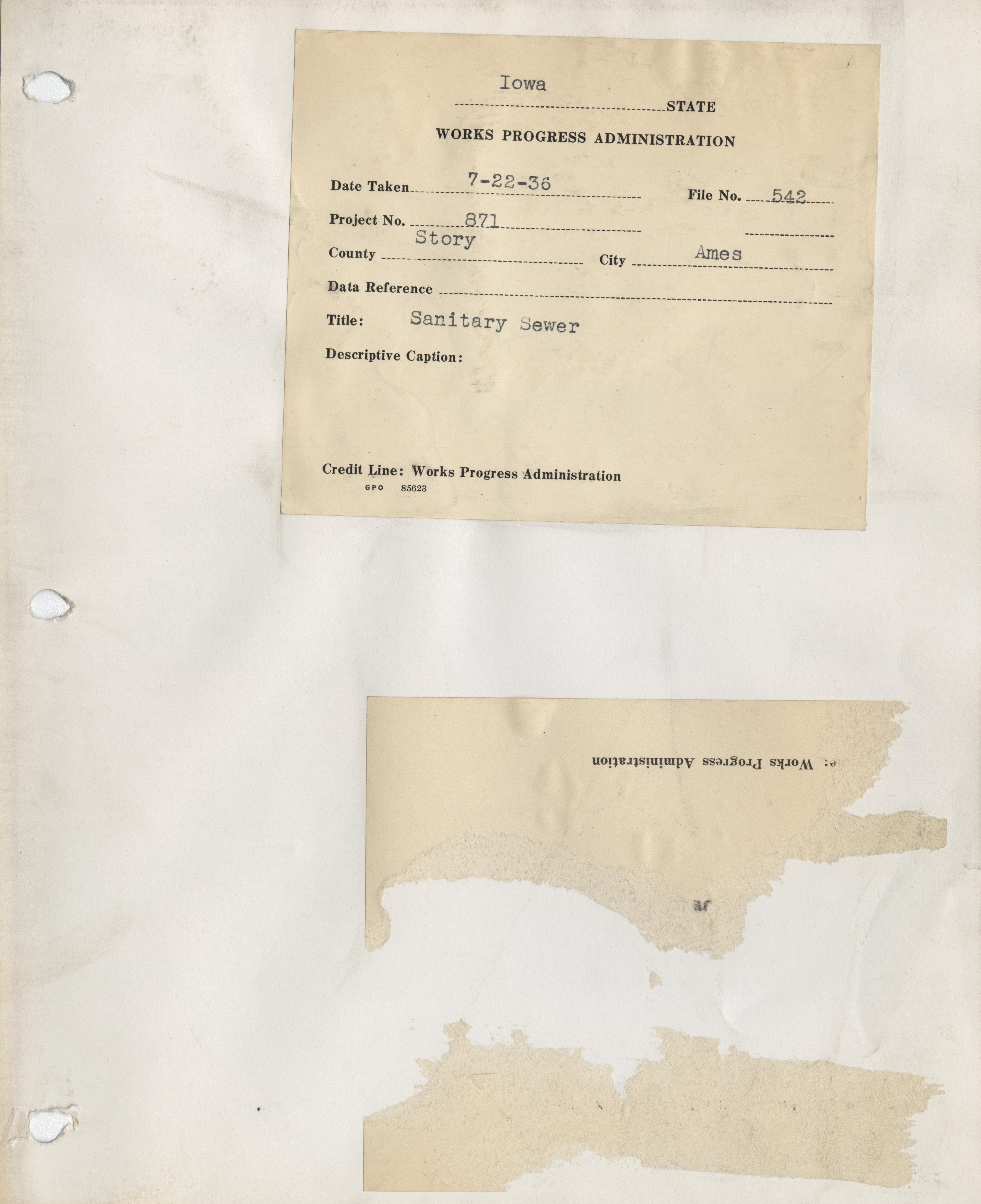 - District 4. Story County. Ames. Sewer. Project 871. (2 b/w photograph), 1936