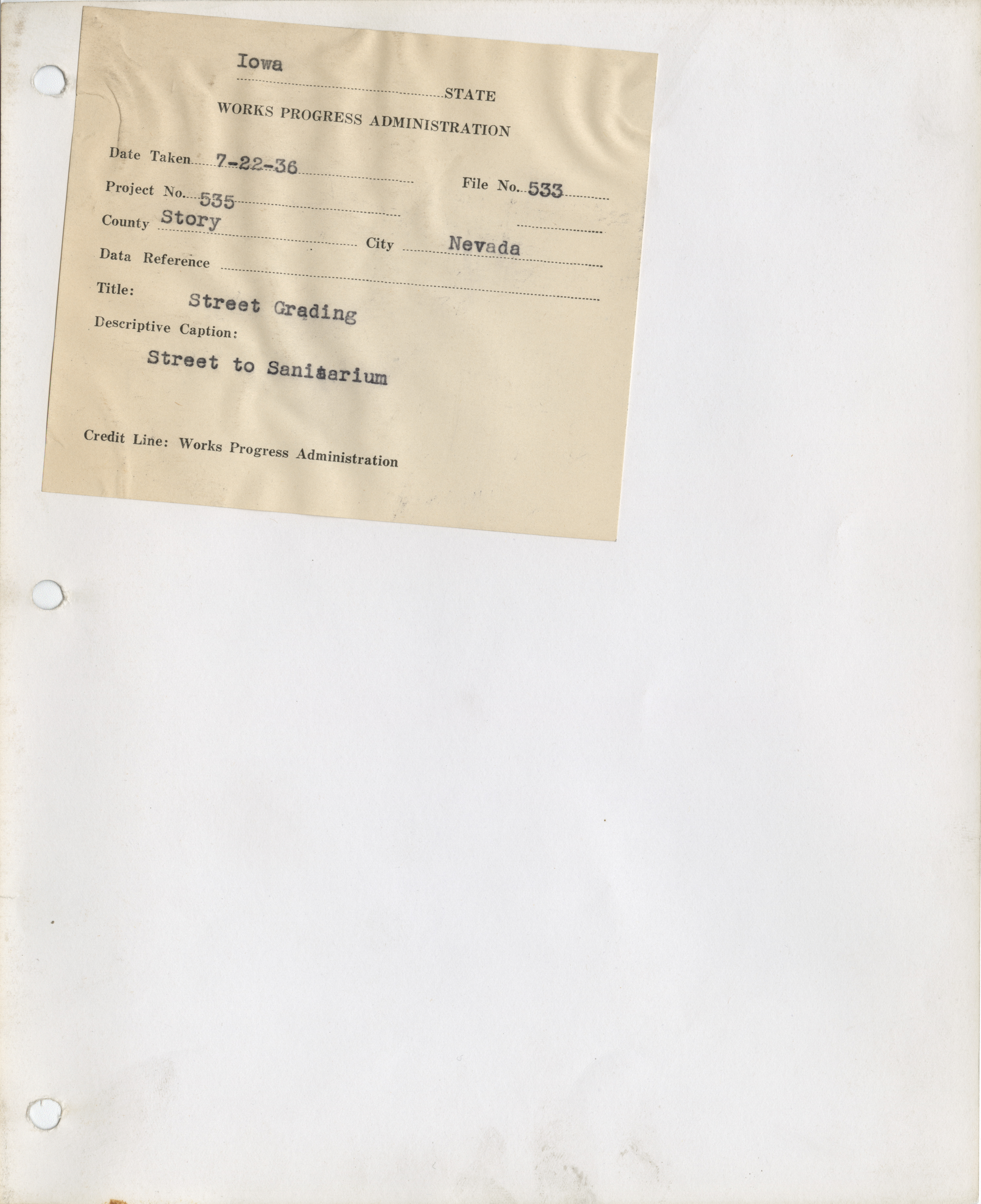 - "Photograph of street grading in Nevada", Work Projects Administration (Iowa) Photographs, Iowa State University Library Digital Collections