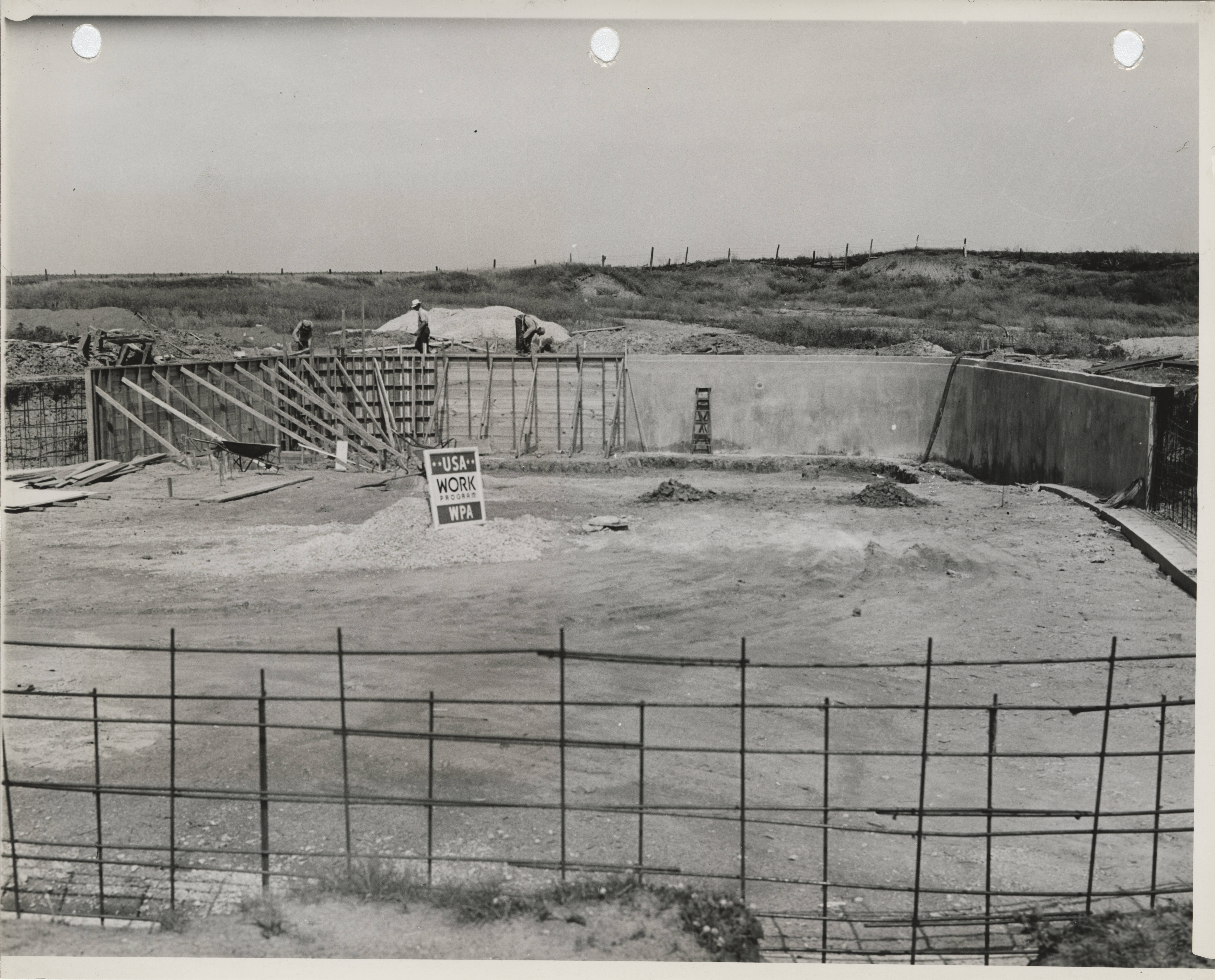 - Photograph of the construction of a swimming pool at the city recreational center in Pella