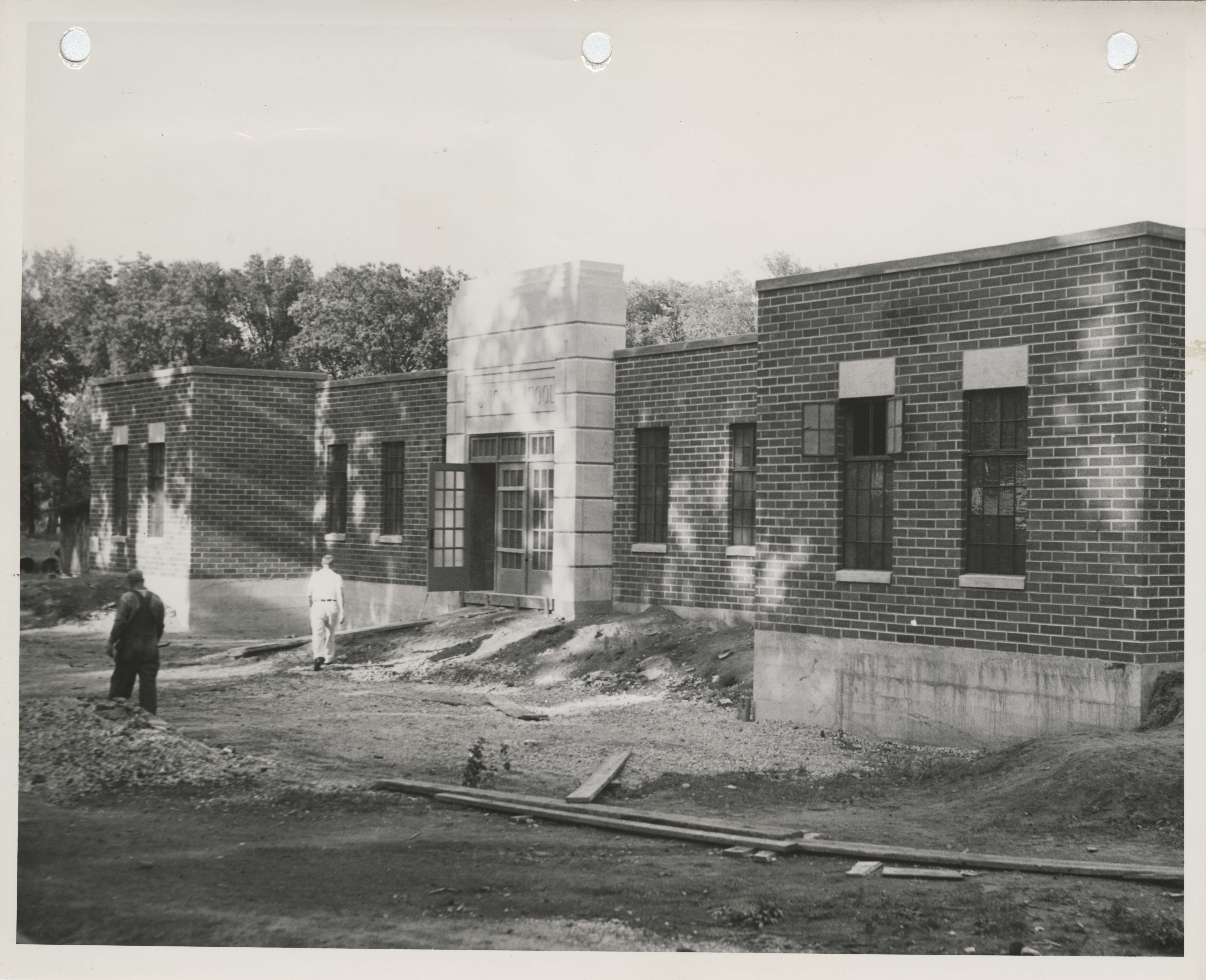 - Photograph of the construction of the bathhouse at Riverview Park in Marshalltown