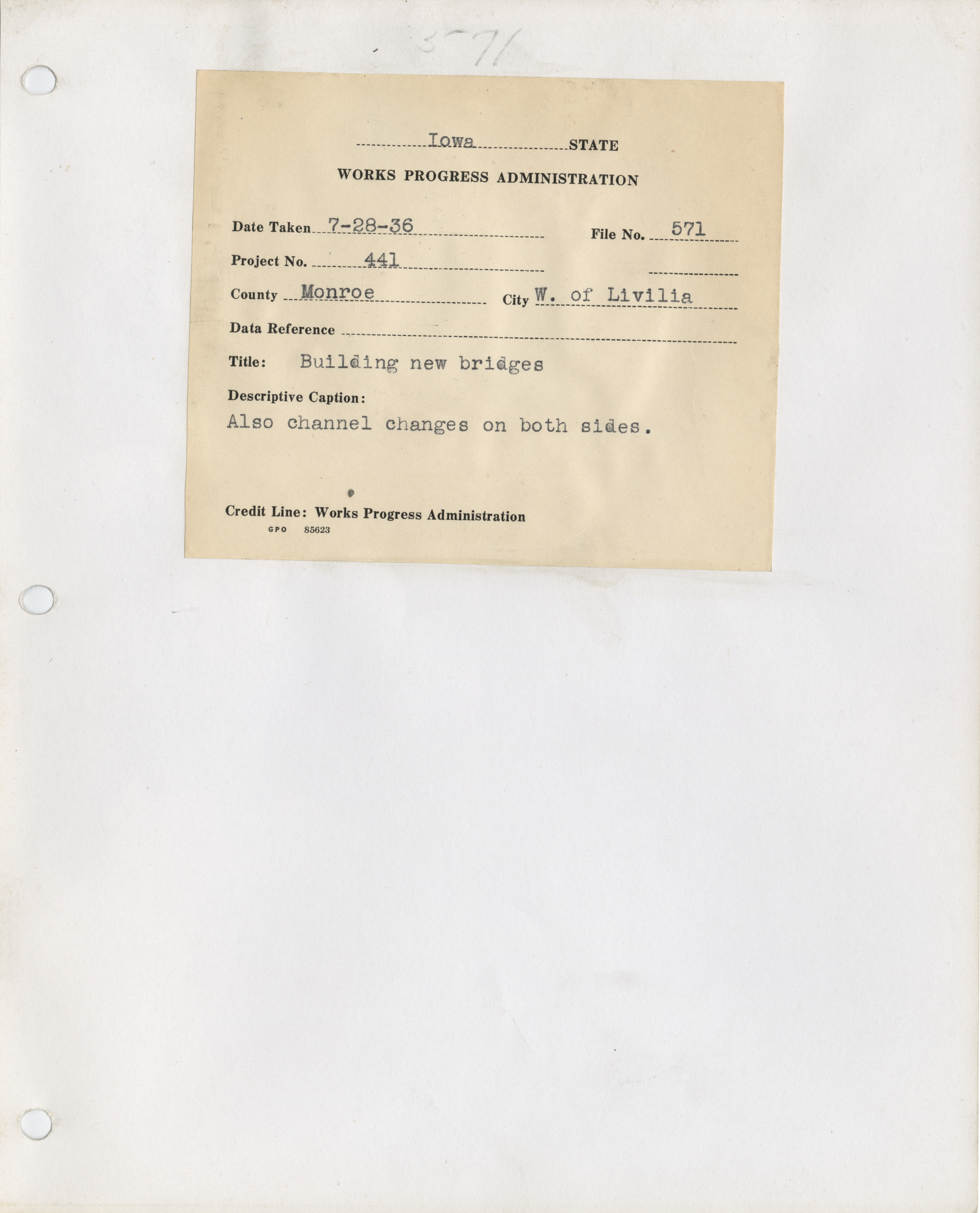 - "Photograph of a new bridge and channel change west of Lovilia", Work Projects Administration (Iowa) Photographs, Iowa State University Library Digital Collections