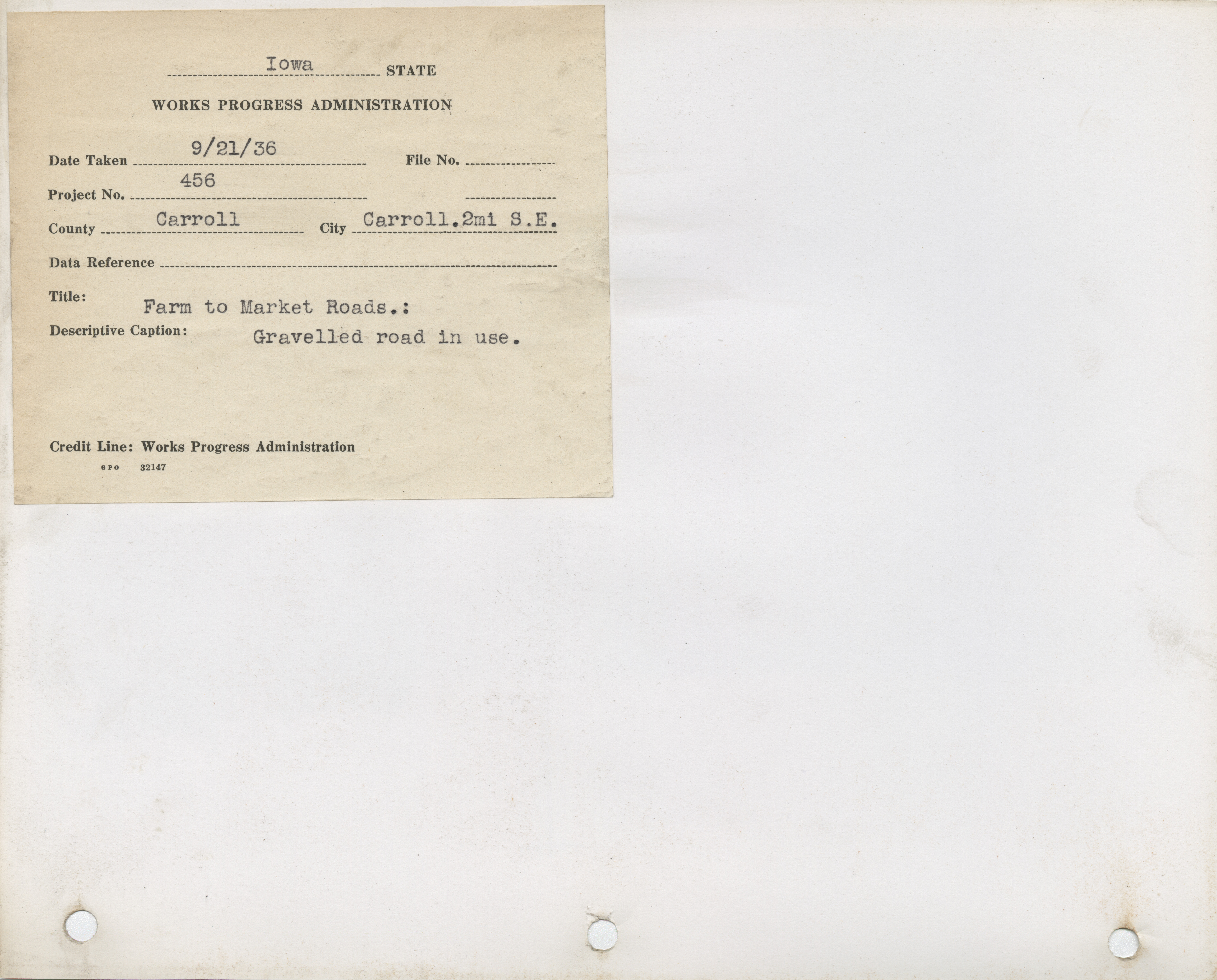 - "Photograph of farm-to-market road in Carroll", Work Projects Administration (Iowa) Photographs, Iowa State University Library Digital Collections