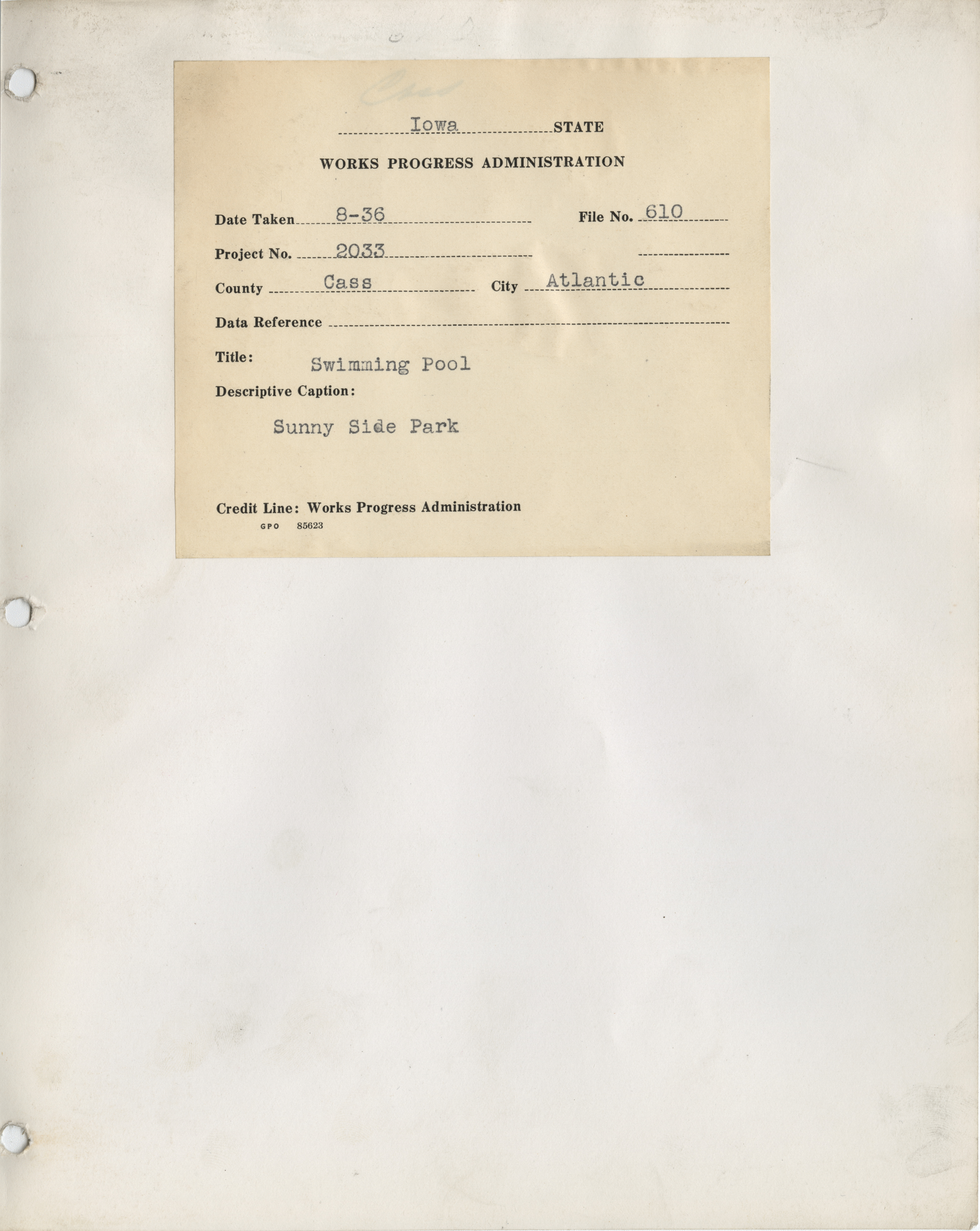 - "Photograph of swimming pool construction at the Sunnyside Park in Atlantic", Work Projects Administration (Iowa) Photographs, Iowa State University Library Digital Collections
