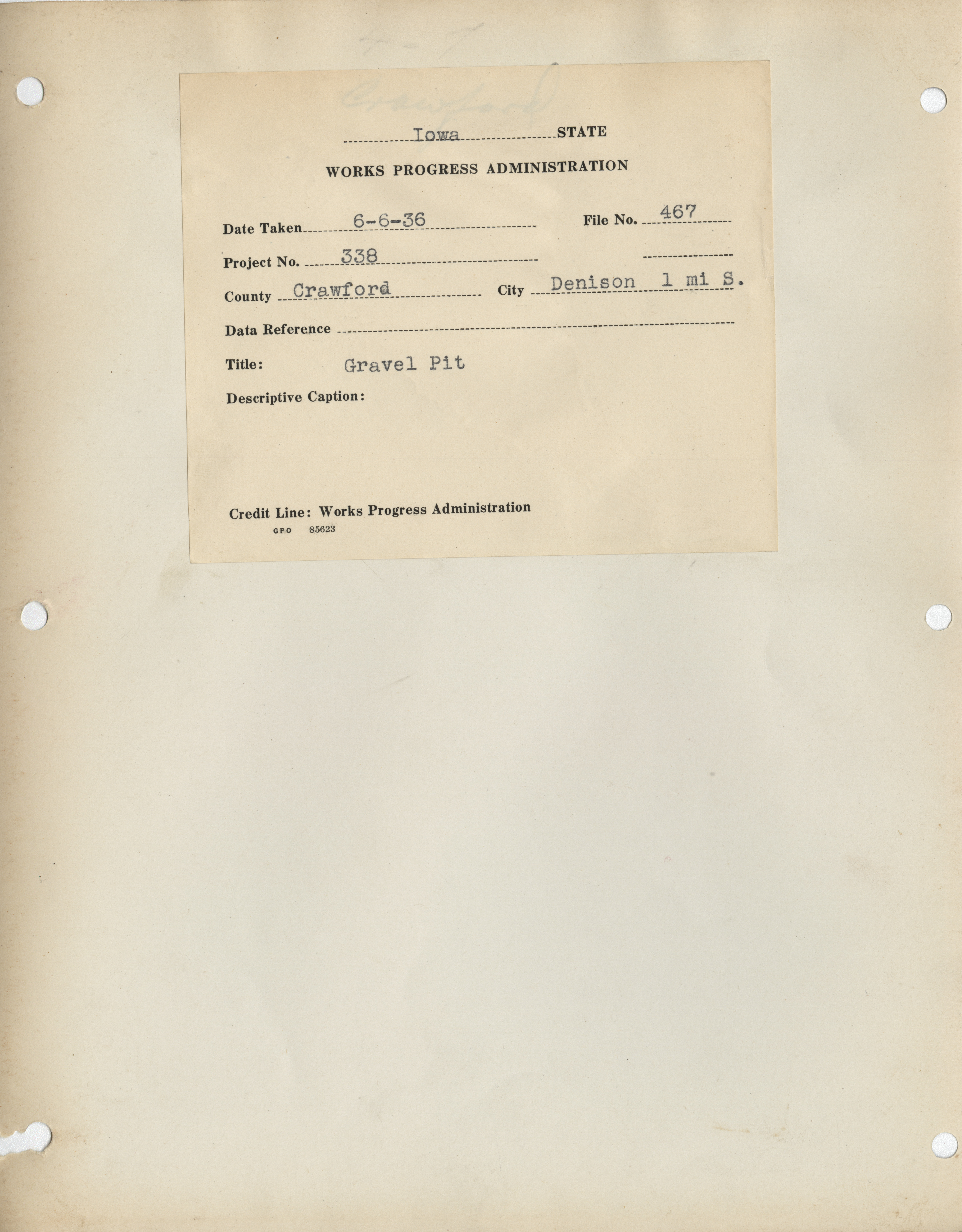 - District 5. Crawford County. Denison. Gravel Pit. Project 338. (3 b/w photographs), 1936