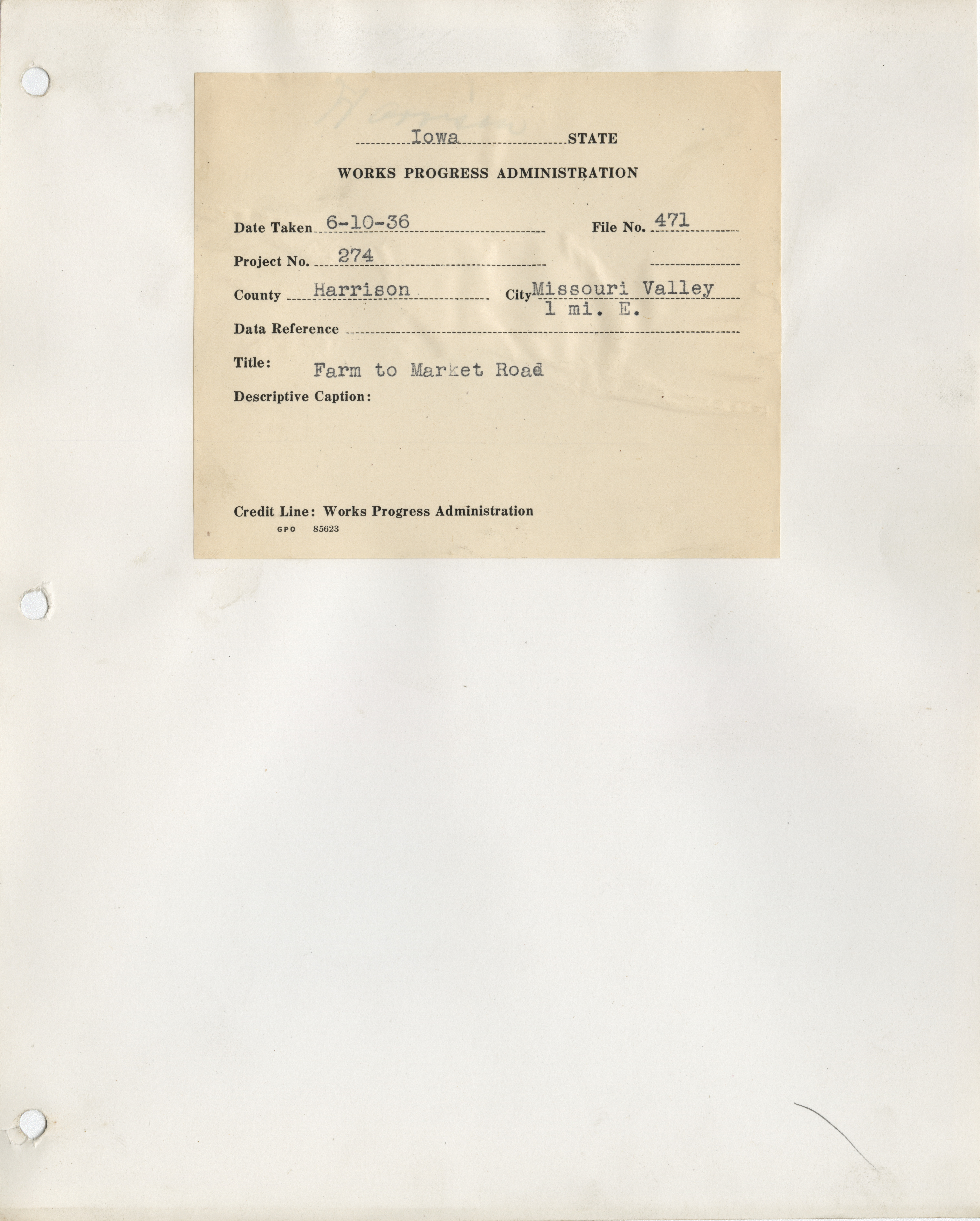 - "Photograph of farm-to-market road in Missouri Valley", Work Projects Administration (Iowa) Photographs, Iowa State University Library Digital Collections