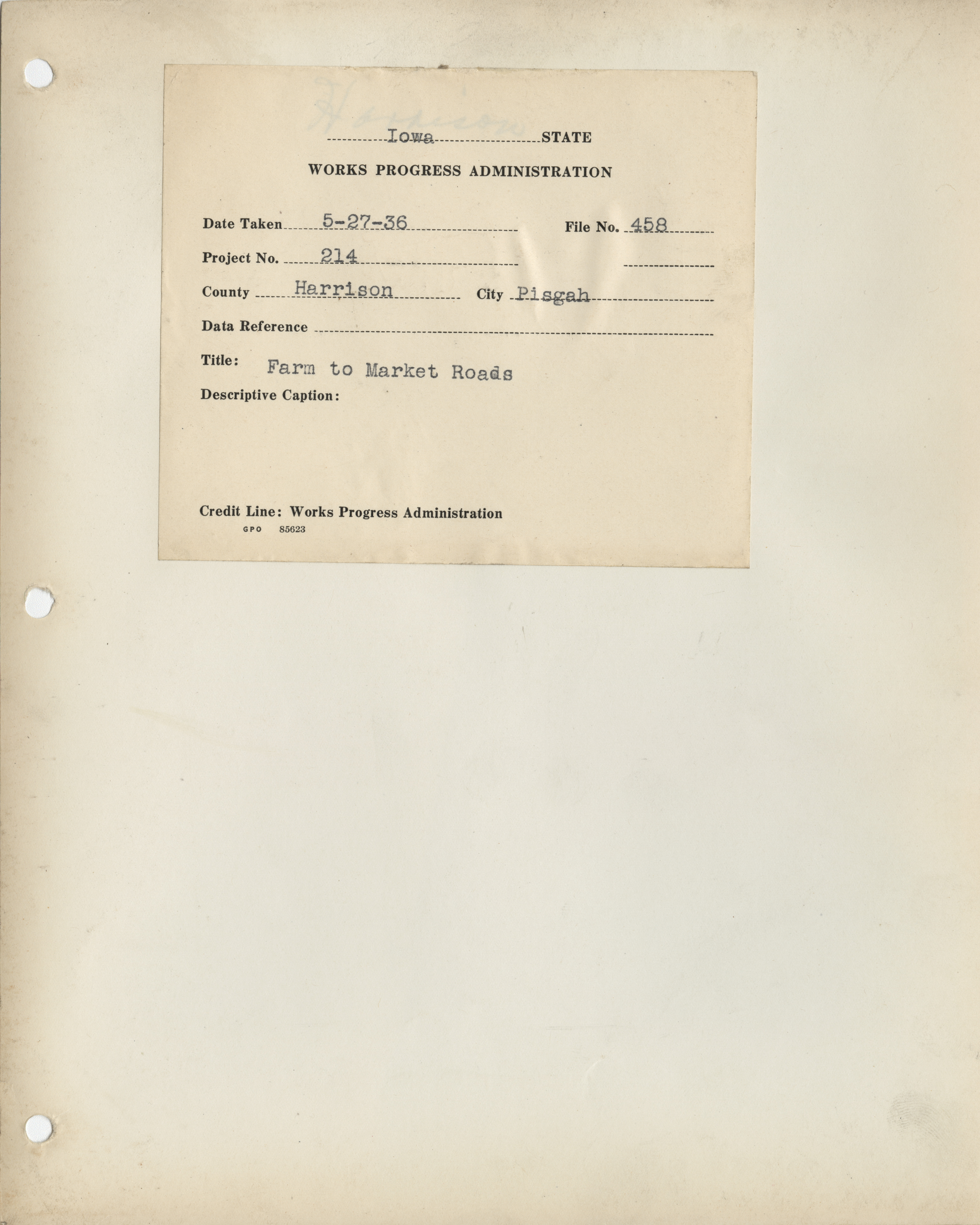- "Photograph of farm-to-market road in Pisgah", Work Projects Administration (Iowa) Photographs, Iowa State University Library Digital Collections