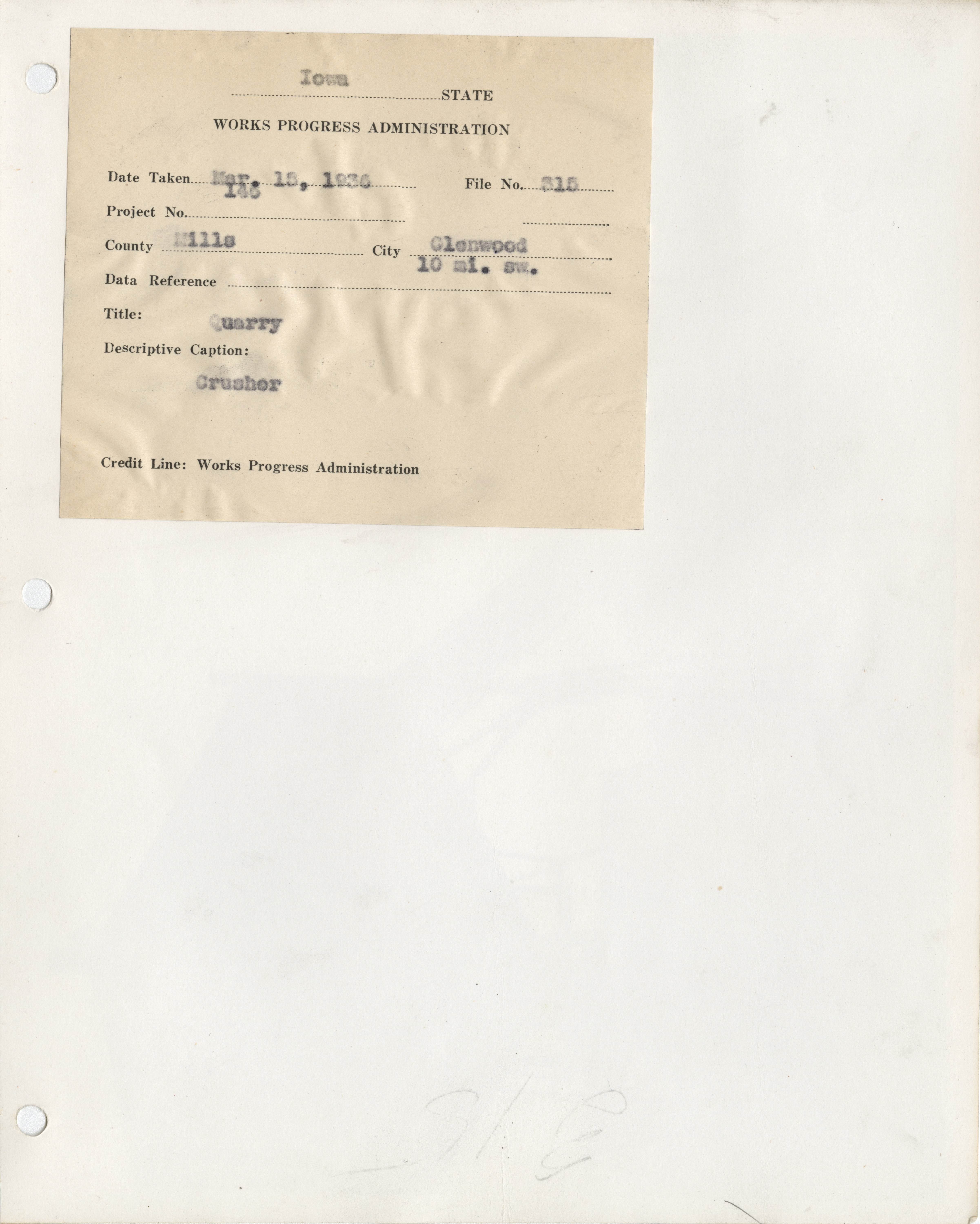 - "Photograph of rock crusher at the quarry in Glenwood", Work Projects Administration (Iowa) Photographs, Iowa State University Library Digital Collections
