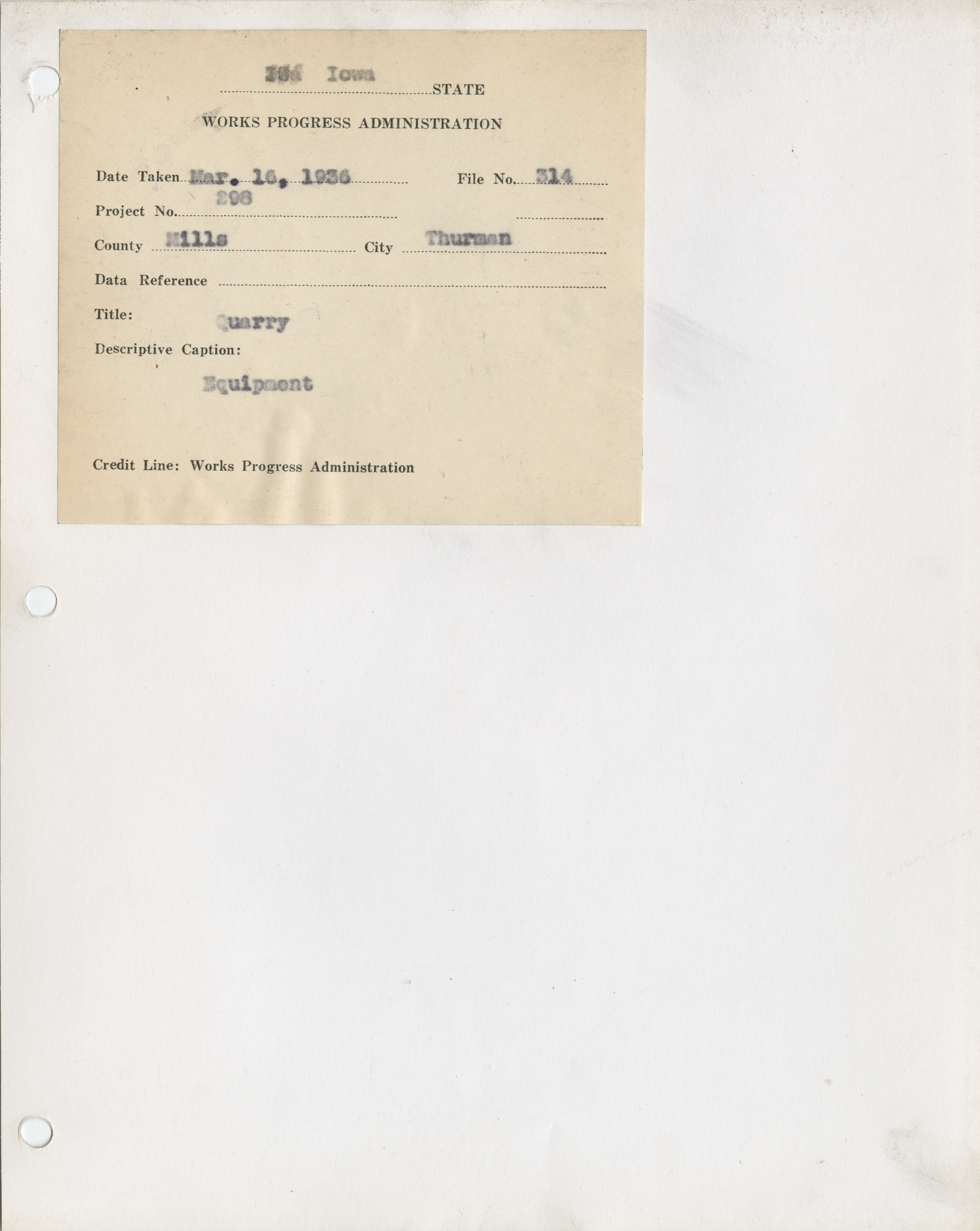 - "Photograph of equipment at the quarry in Thurman", Work Projects Administration (Iowa) Photographs, Iowa State University Library Digital Collections