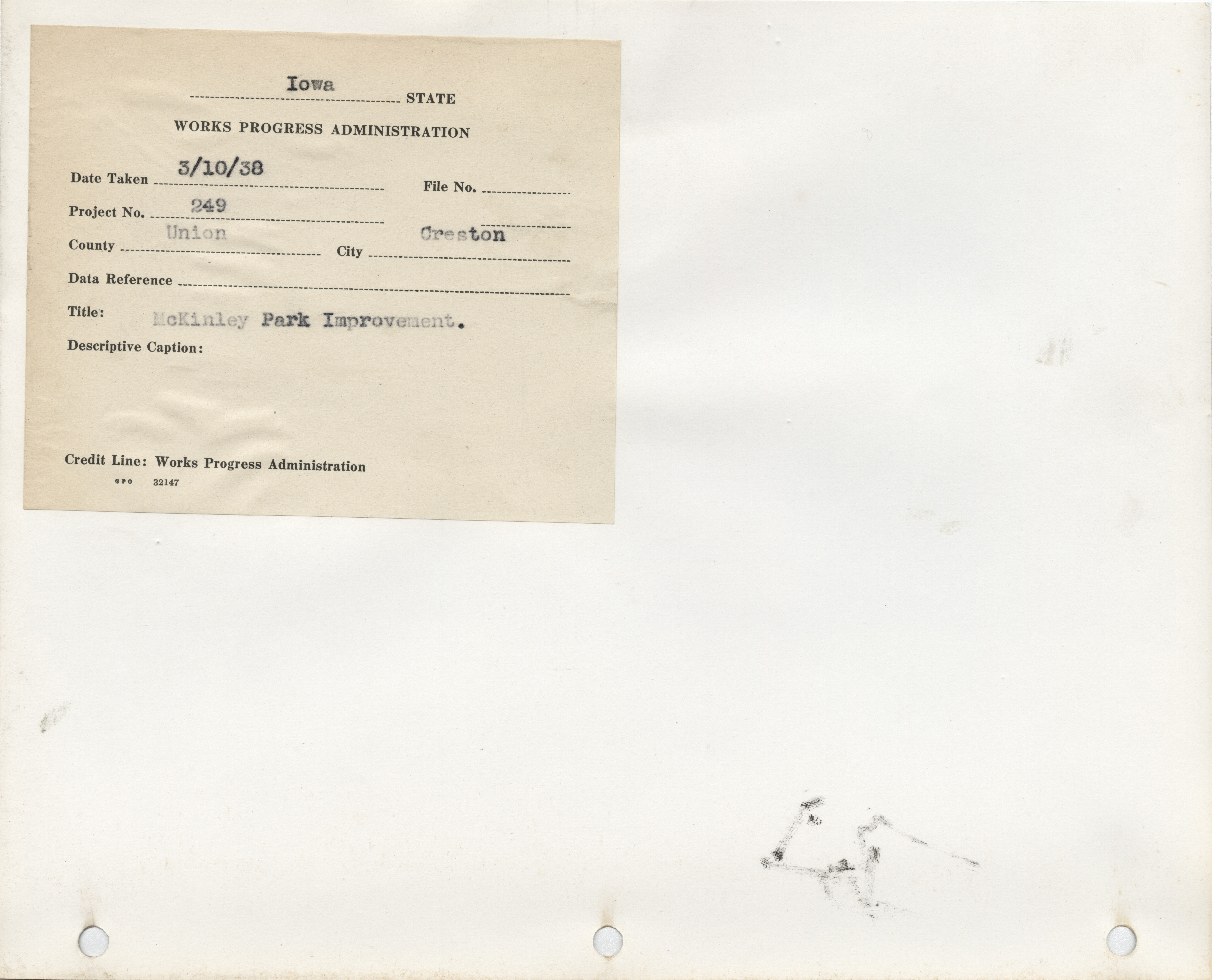 - "Photograph of McKinley Park improvement in Creston", Work Projects Administration (Iowa) Photographs, Iowa State University Library Digital Collections