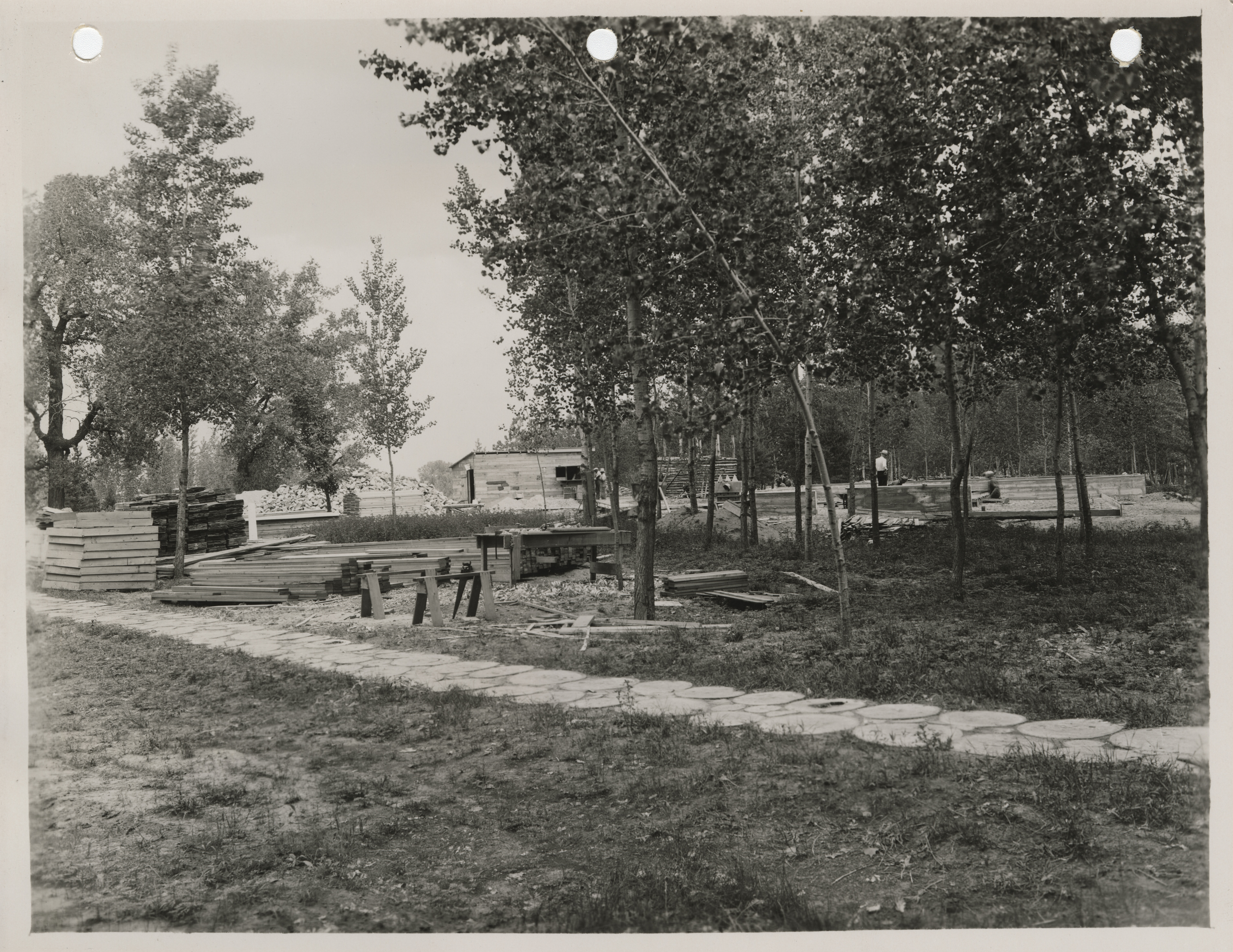 - Photograph of the construction of shelter house in the Lewis and Clark State Park