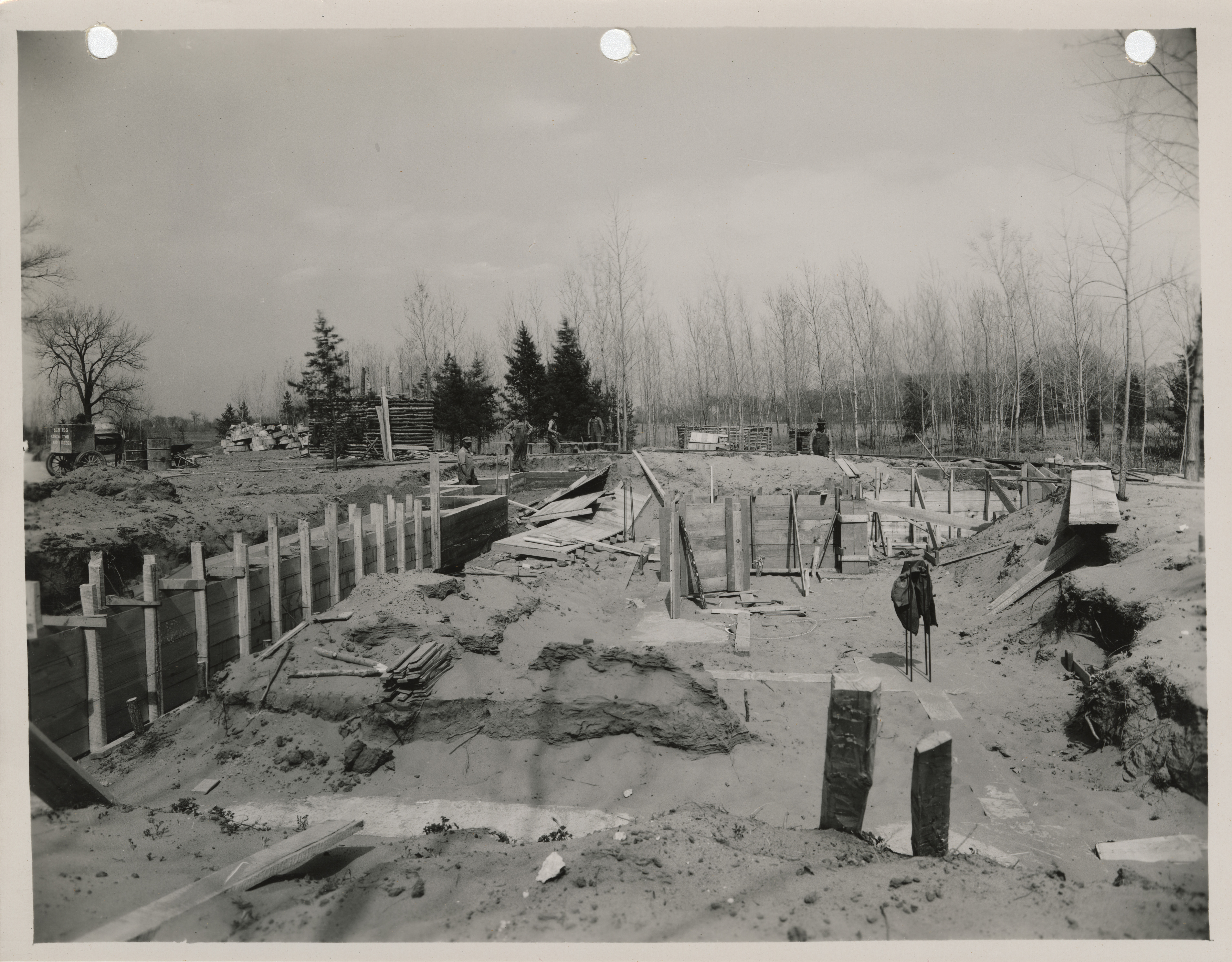 Photograph of the construction of shelter house in the Lewis and Clark State Park Item Info