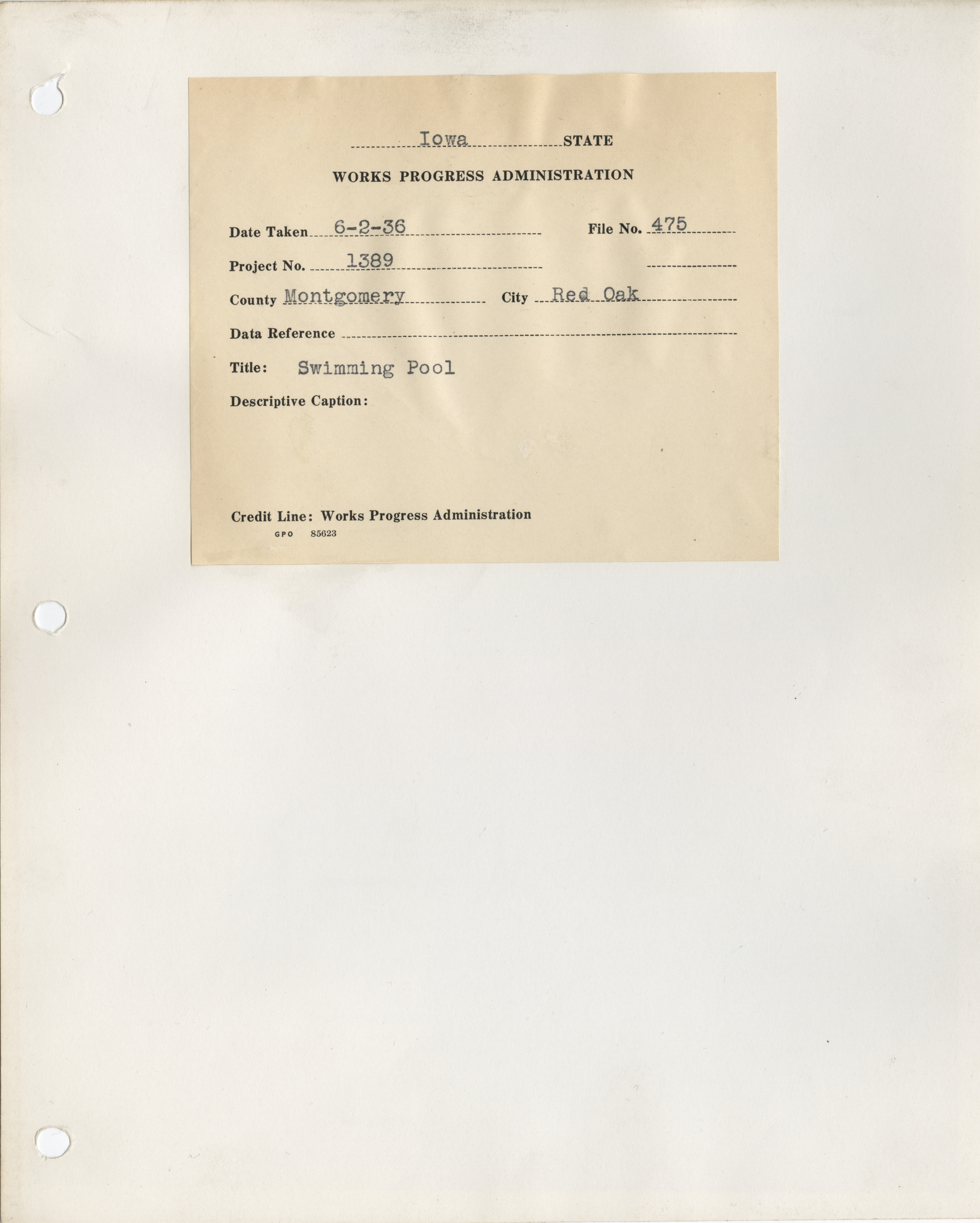 - "Photograph of the construction of swimming pool in Red Oak", Work Projects Administration (Iowa) Photographs, Iowa State University Library Digital Collections