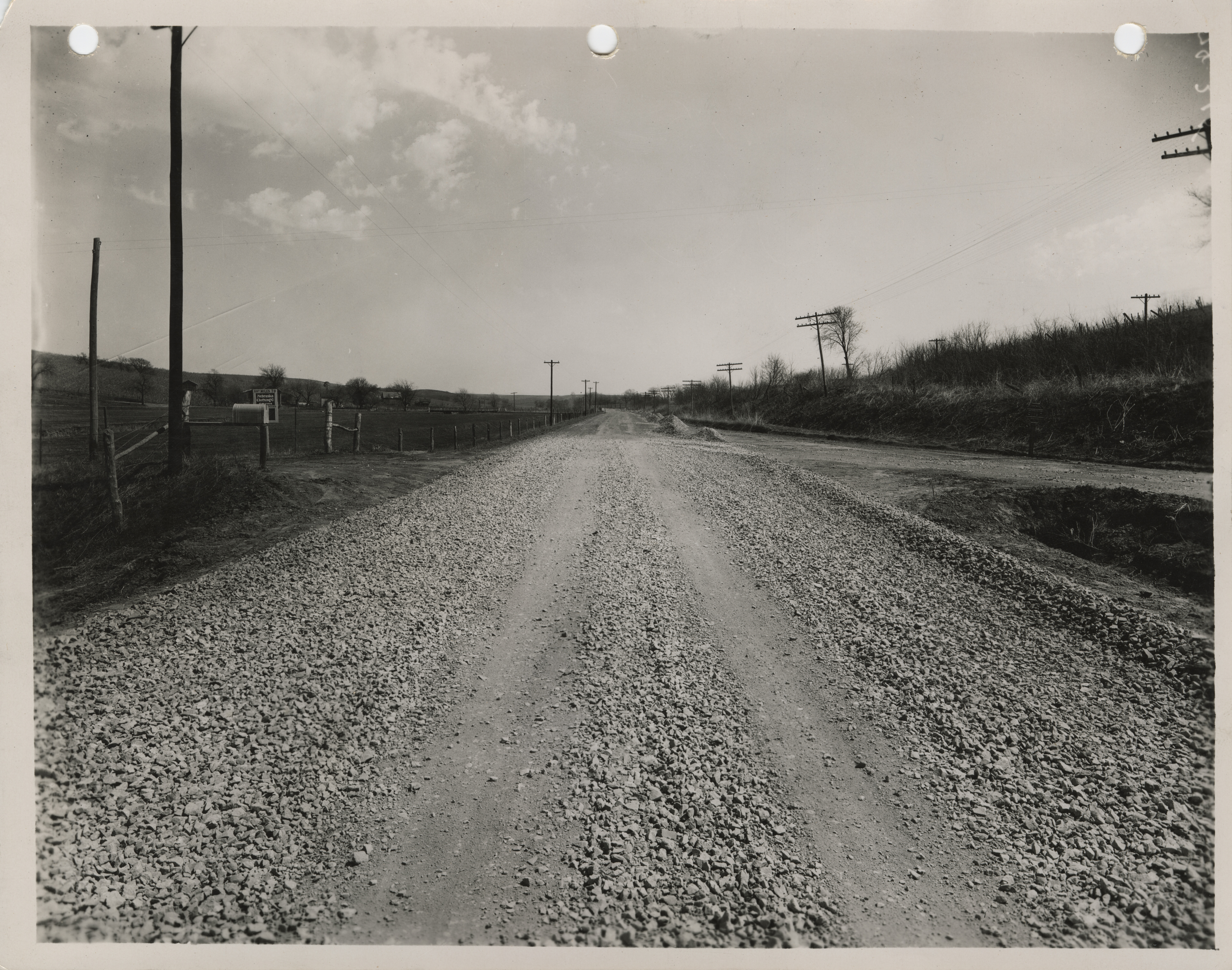 - Photograph of farm-to-market road surfacing with crushed rock in Council Bluffs
