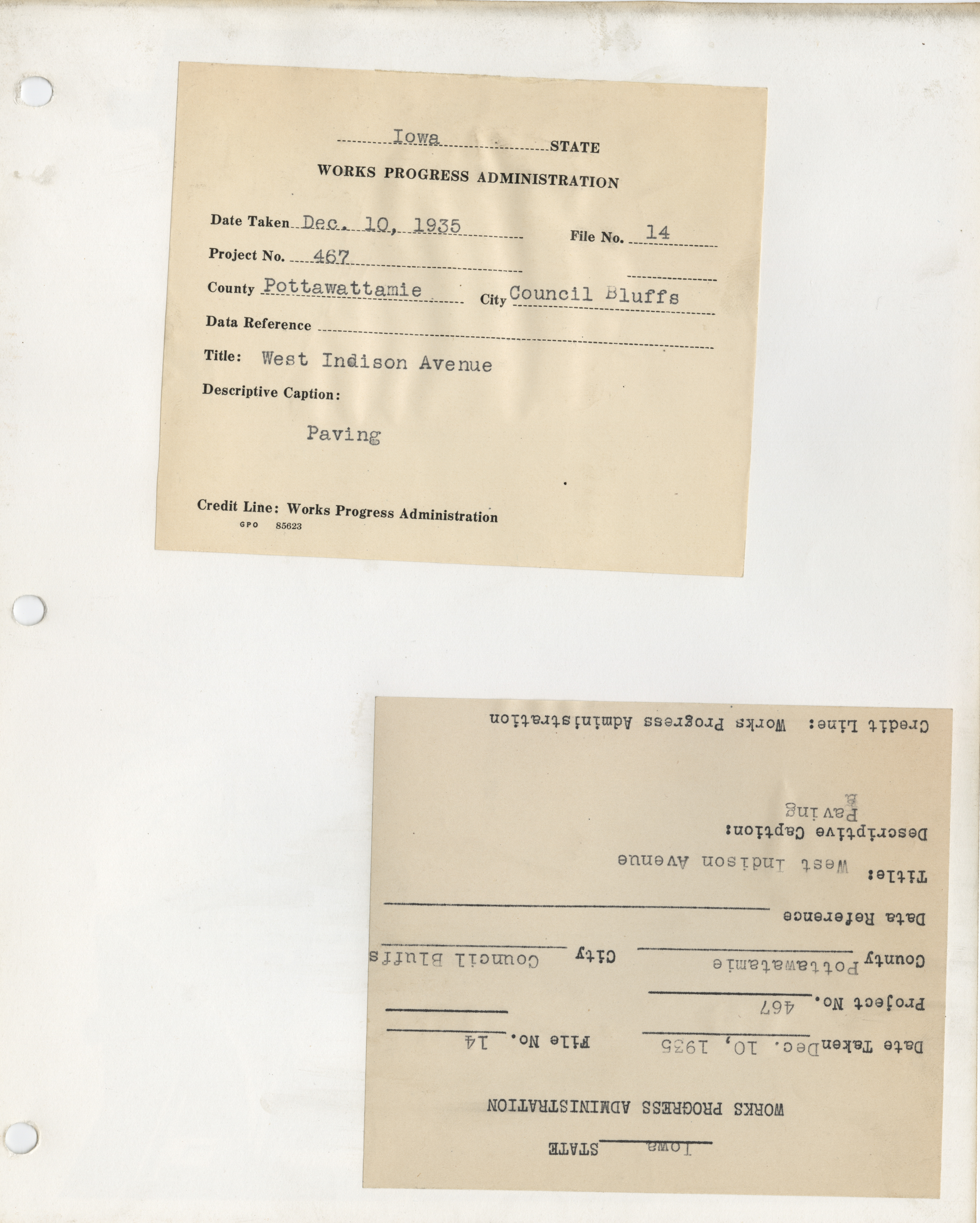 - "Photograph of people paving West Madison Avenue in Council Bluffs", Work Projects Administration (Iowa) Photographs, Iowa State University Library Digital Collections