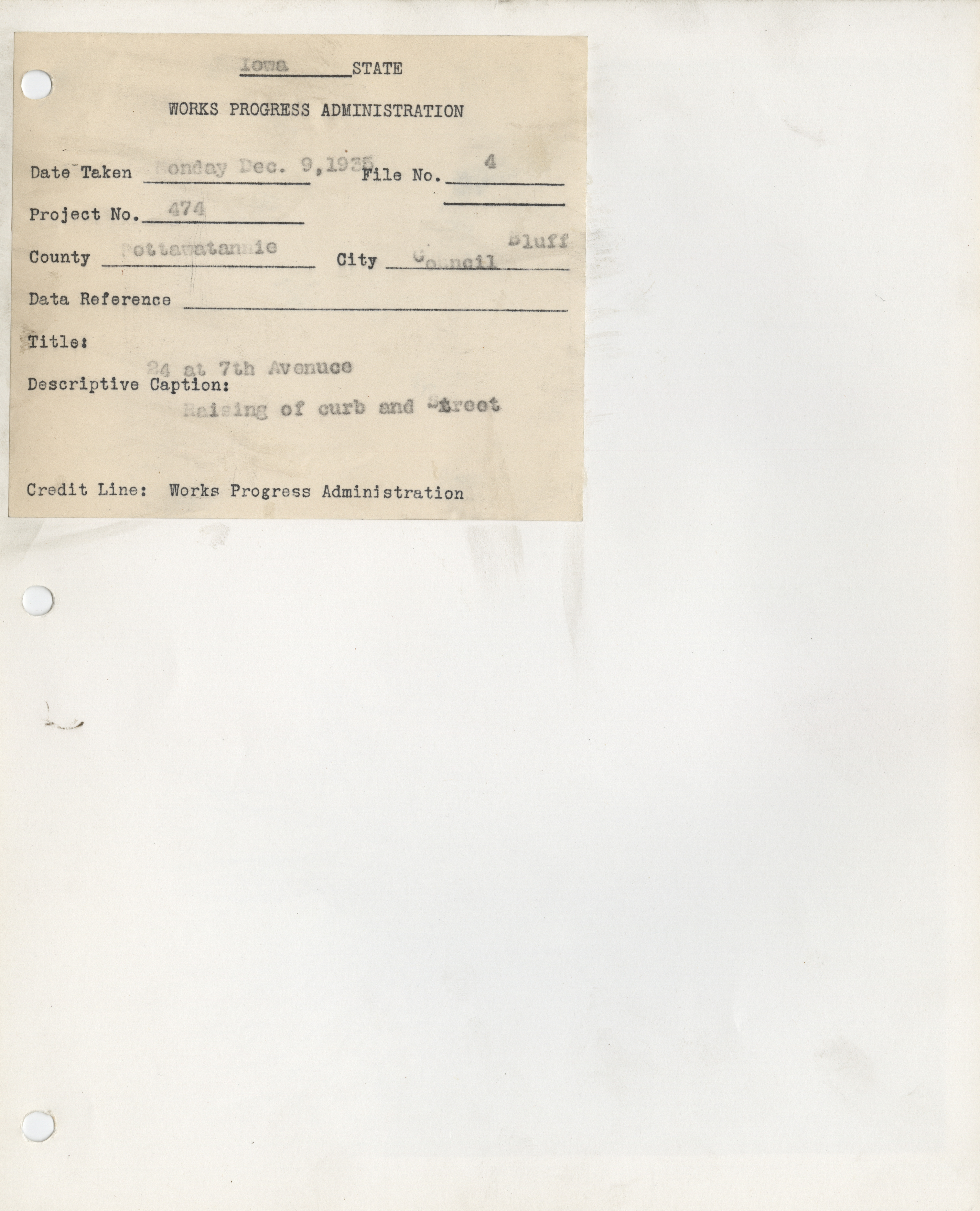 - District 5. Pottawattamie County. Council Bluffs. Raising Curb and Street. Project 474. (1 b/w photograph), 1935