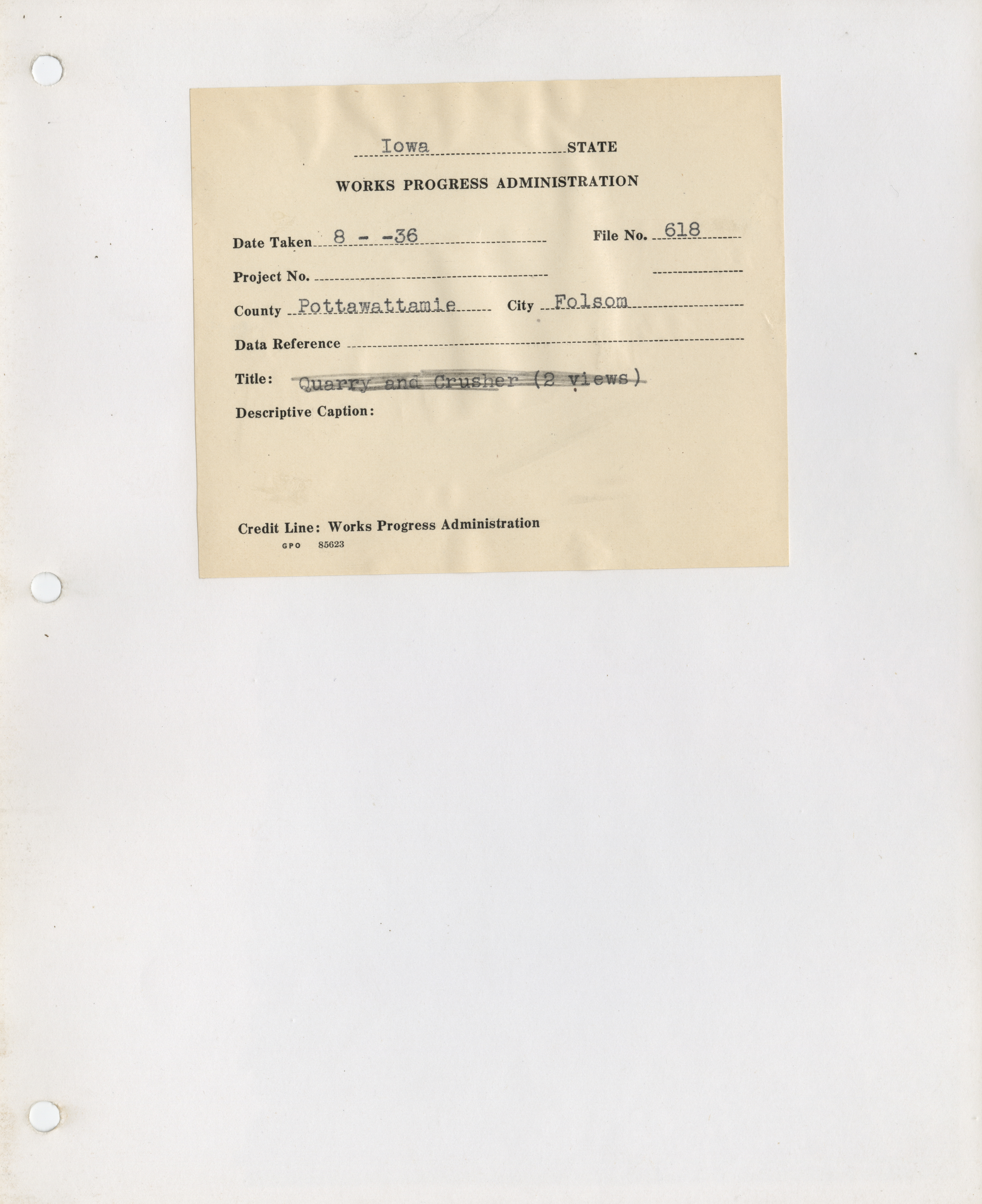 - District 5. Pottawattamie County. Folsom. Quarry and Crusher. (2 b/w photographs), 1936