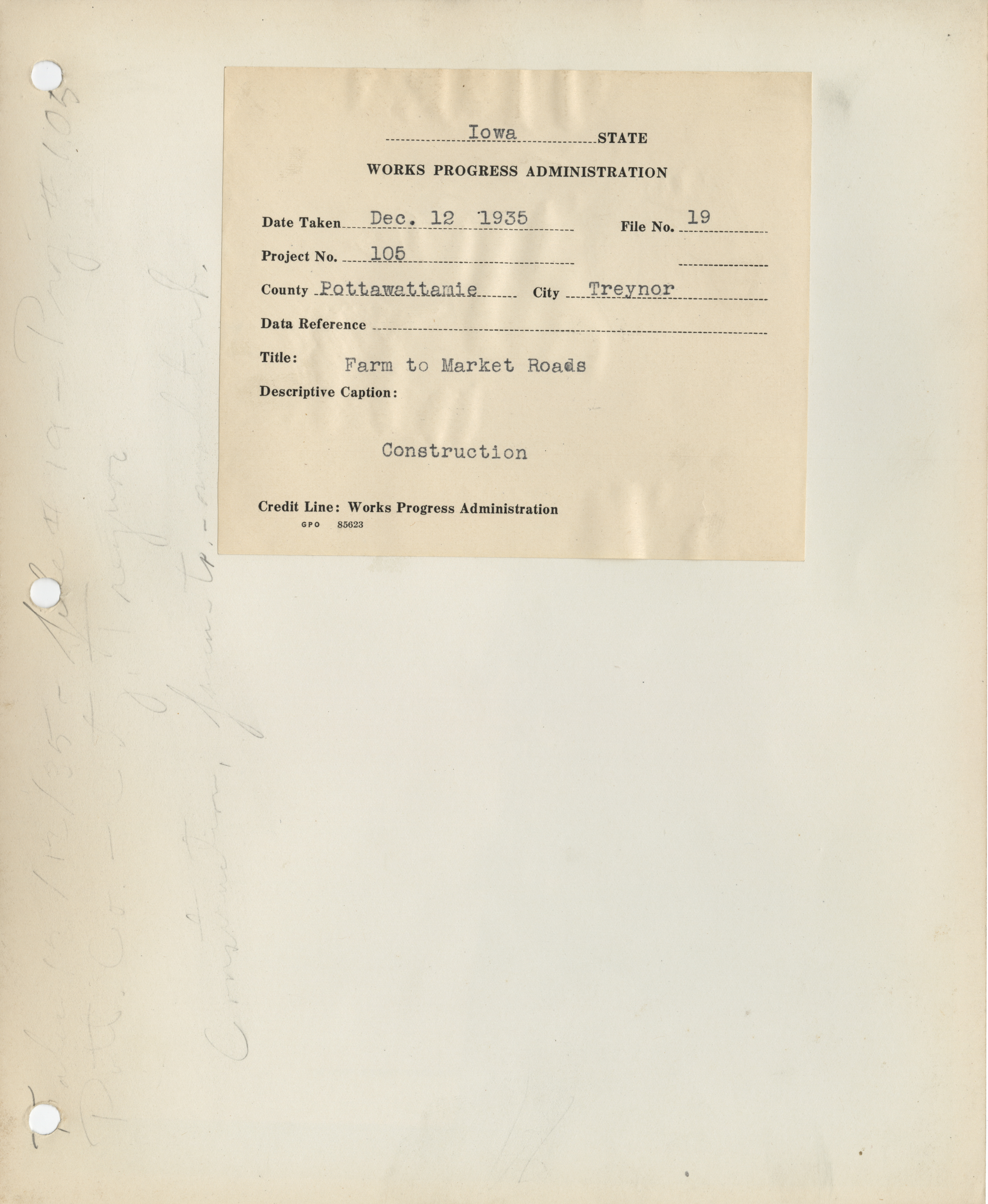 - "Photograph of construction of a farm to market road in Pottawattamie County", Work Projects Administration (Iowa) Photographs, Iowa State University Library Digital Collections