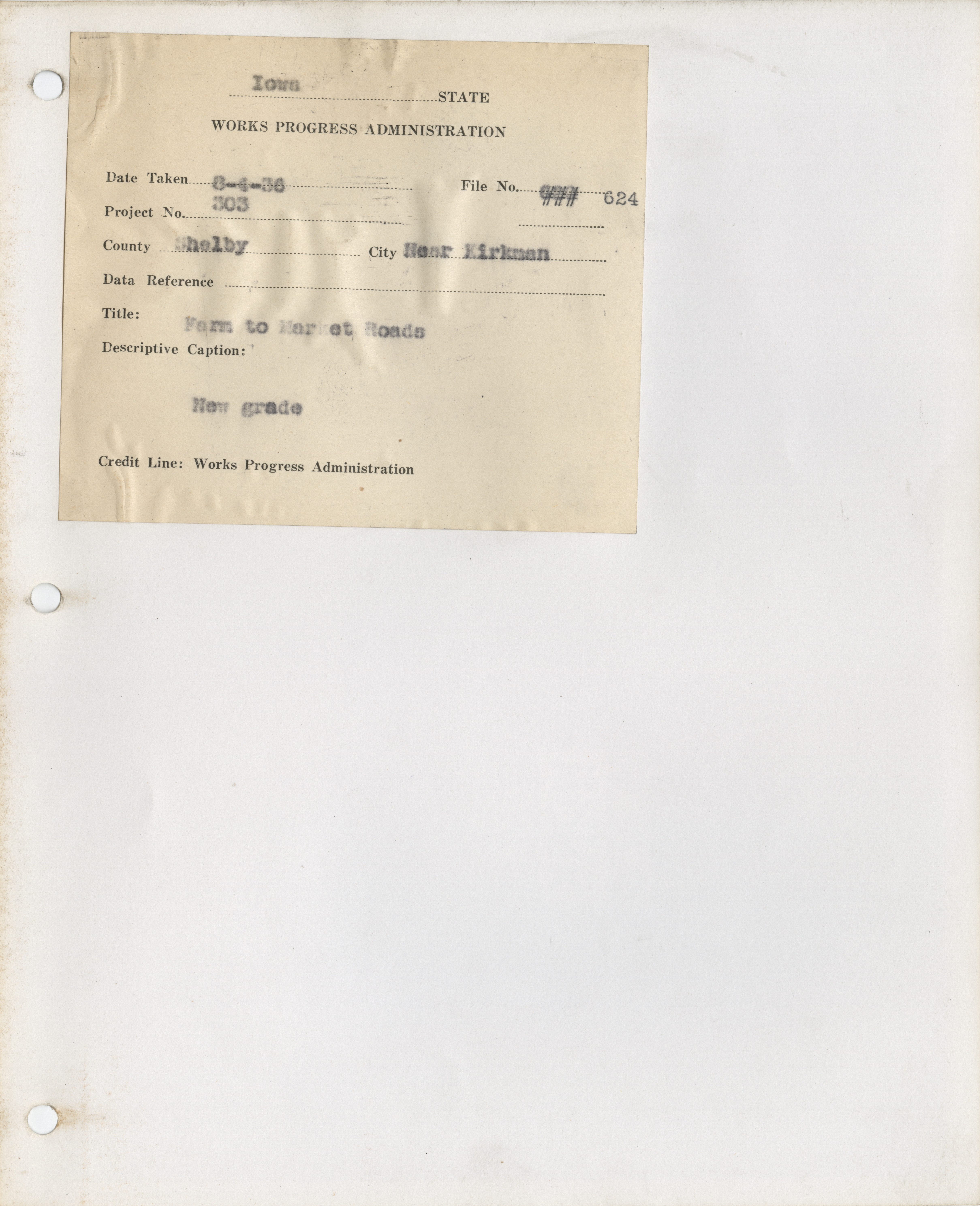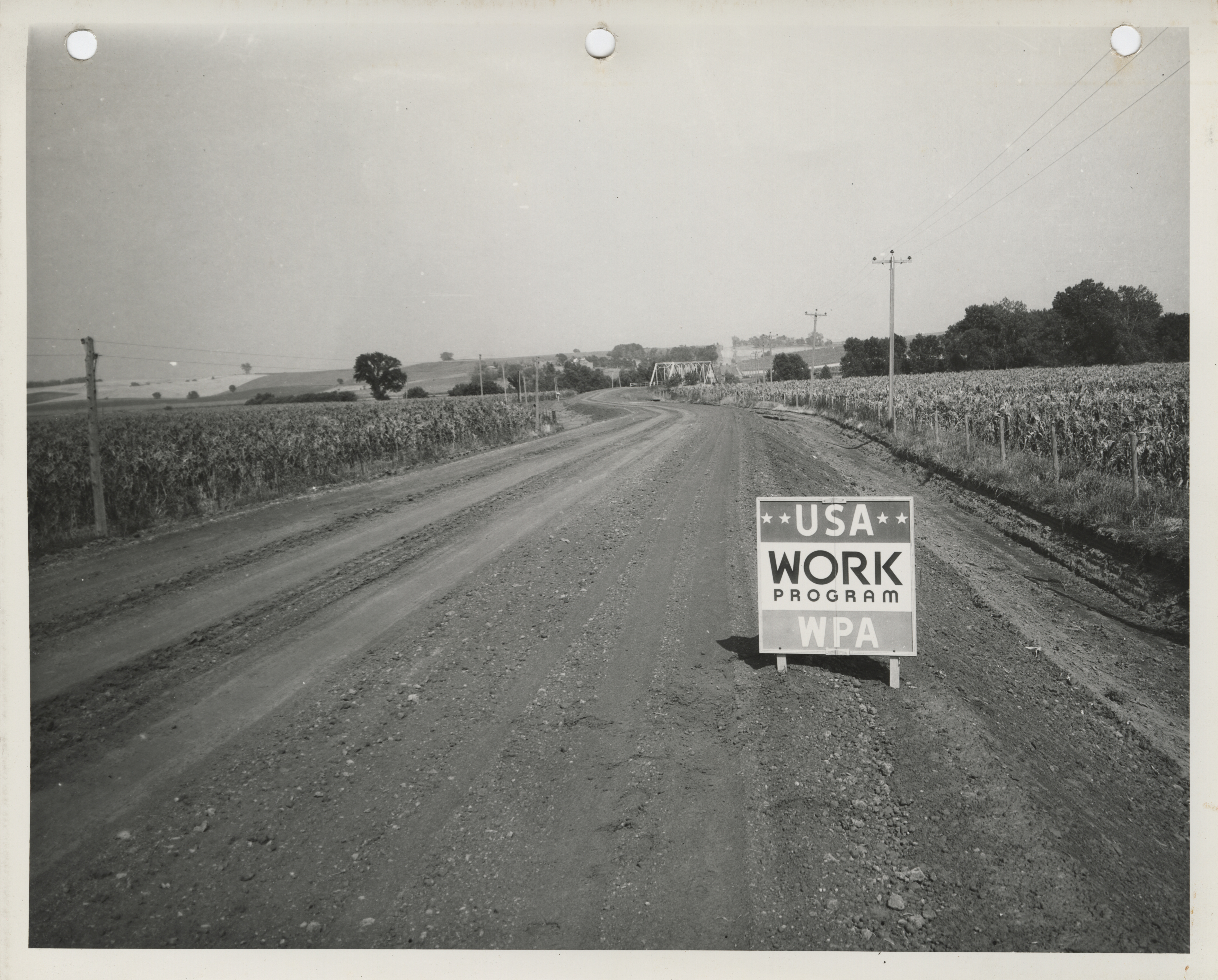 - "Photograph of a new grade on a farm to market road in Shelby County", Work Projects Administration (Iowa) Photographs, Iowa State University Library Digital Collections