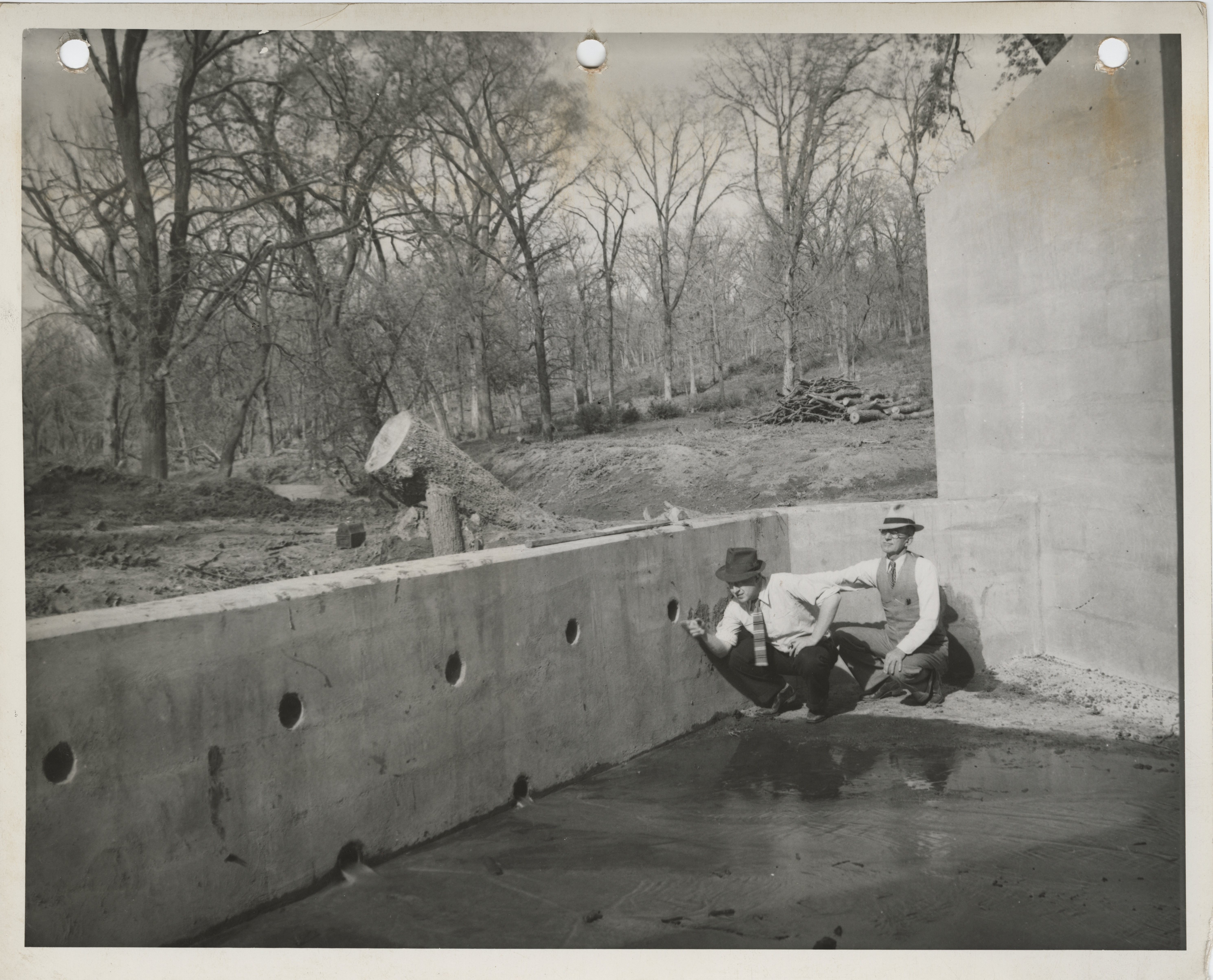 Photograph of two people inspecting culverts at Bedford State Park in Taylor County Item Info