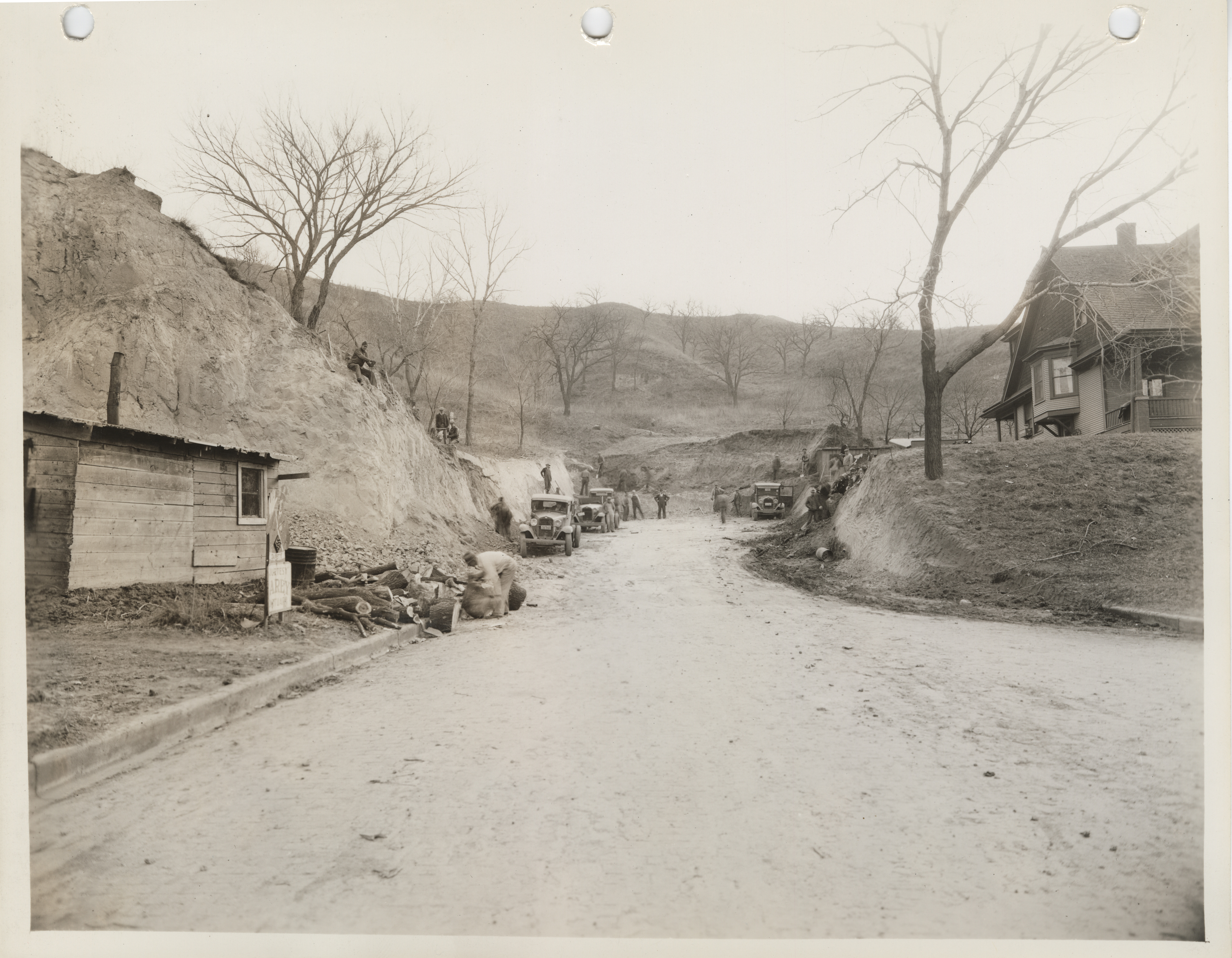 Photograph of people excavating a new entrance to Fairmount Park on 9th Street in Council Bluffs Item Info