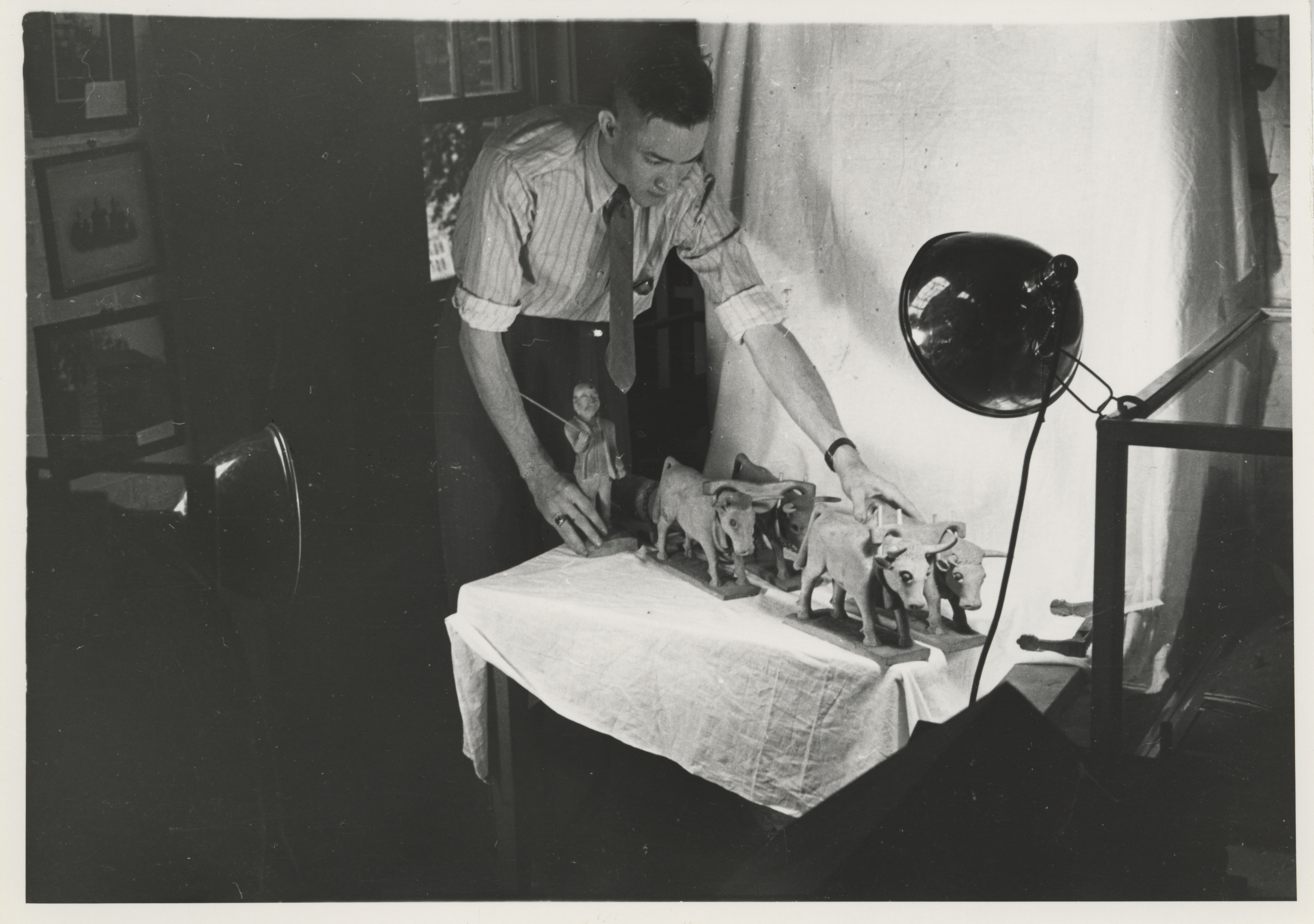 - "Photograph of a person with models of oxen", Work Projects Administration (Iowa) Photographs, Iowa State University Library Digital Collections