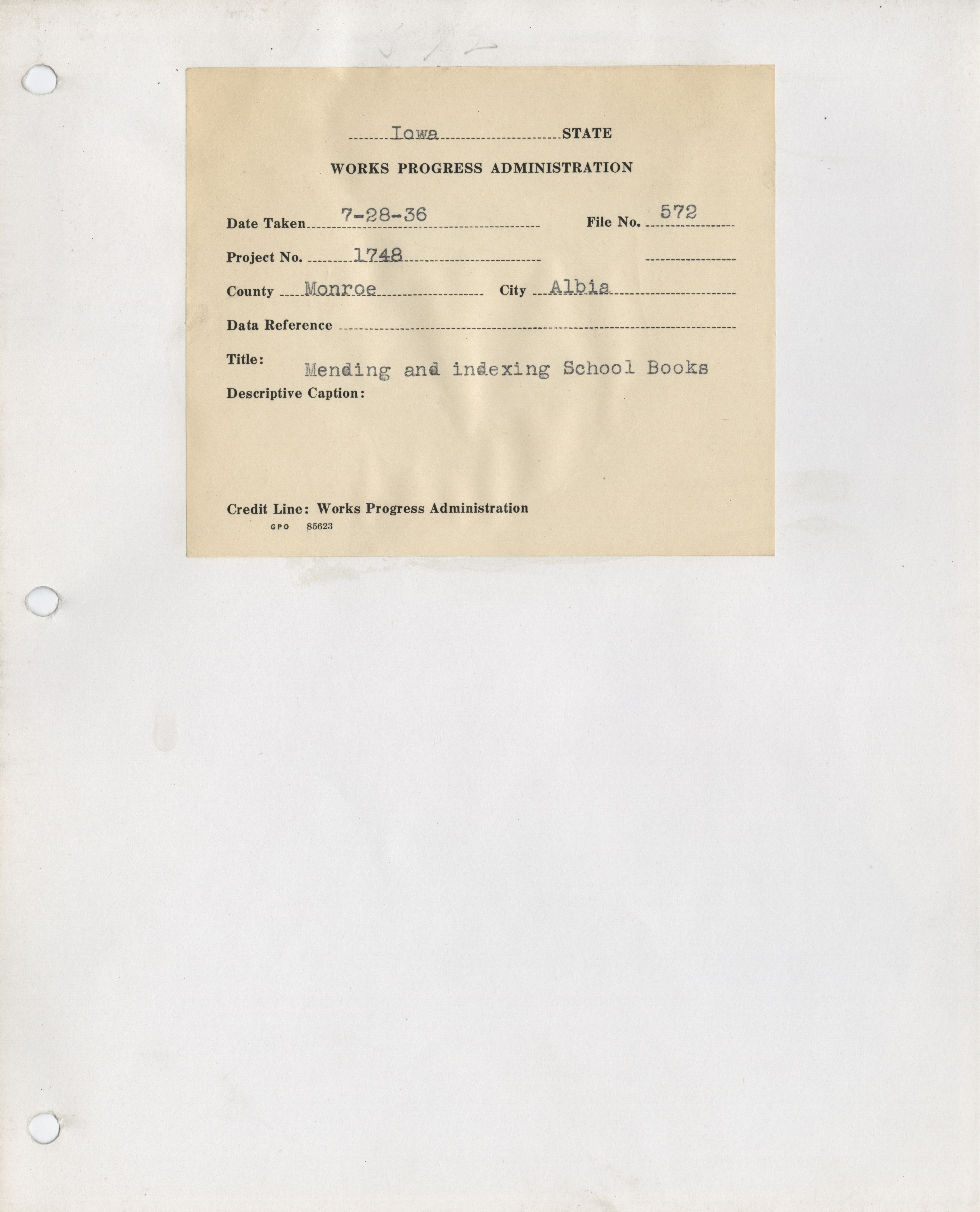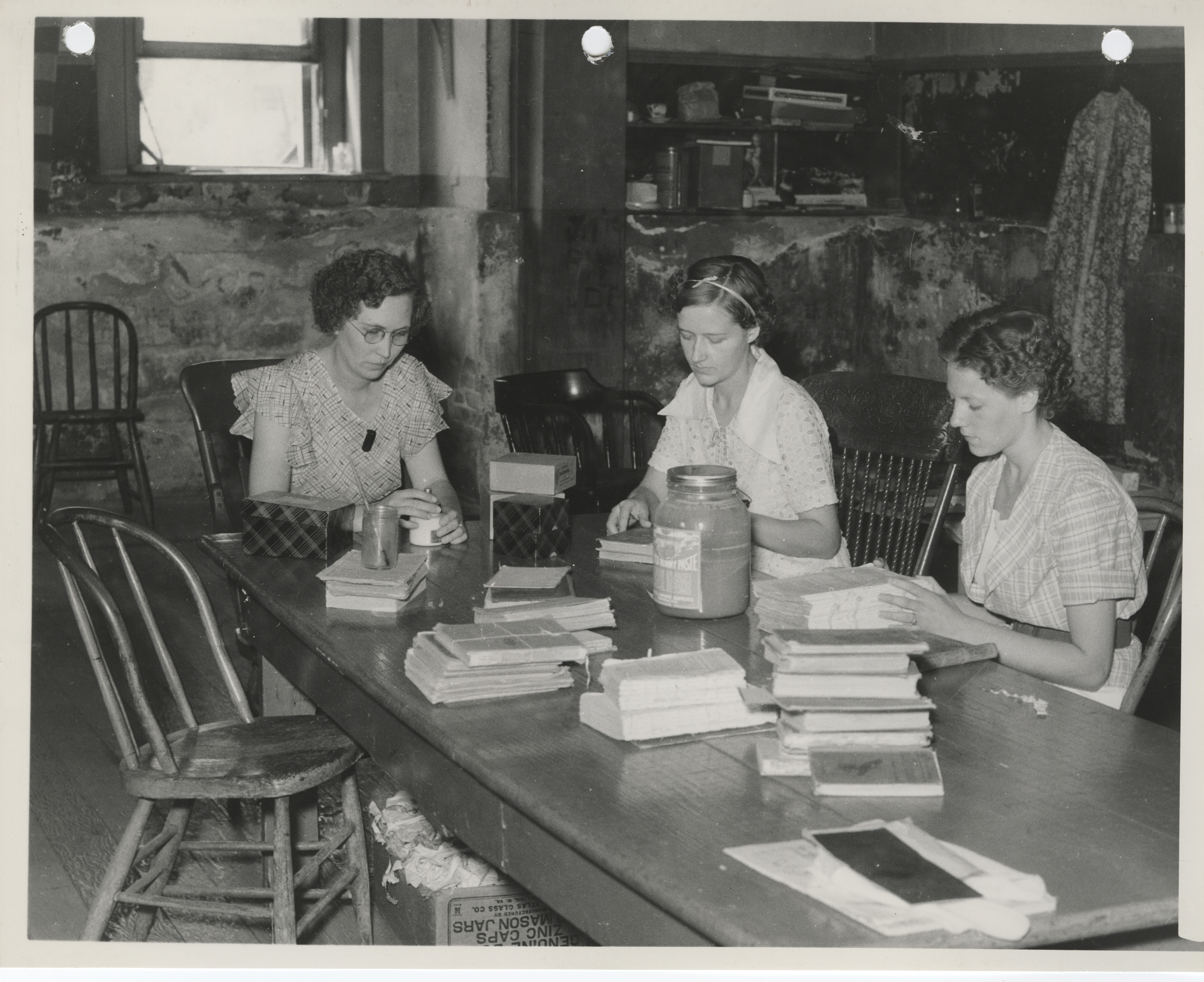 - "Photograph of people mending and indexing school books in Albia", Work Projects Administration (Iowa) Photographs, Iowa State University Library Digital Collections