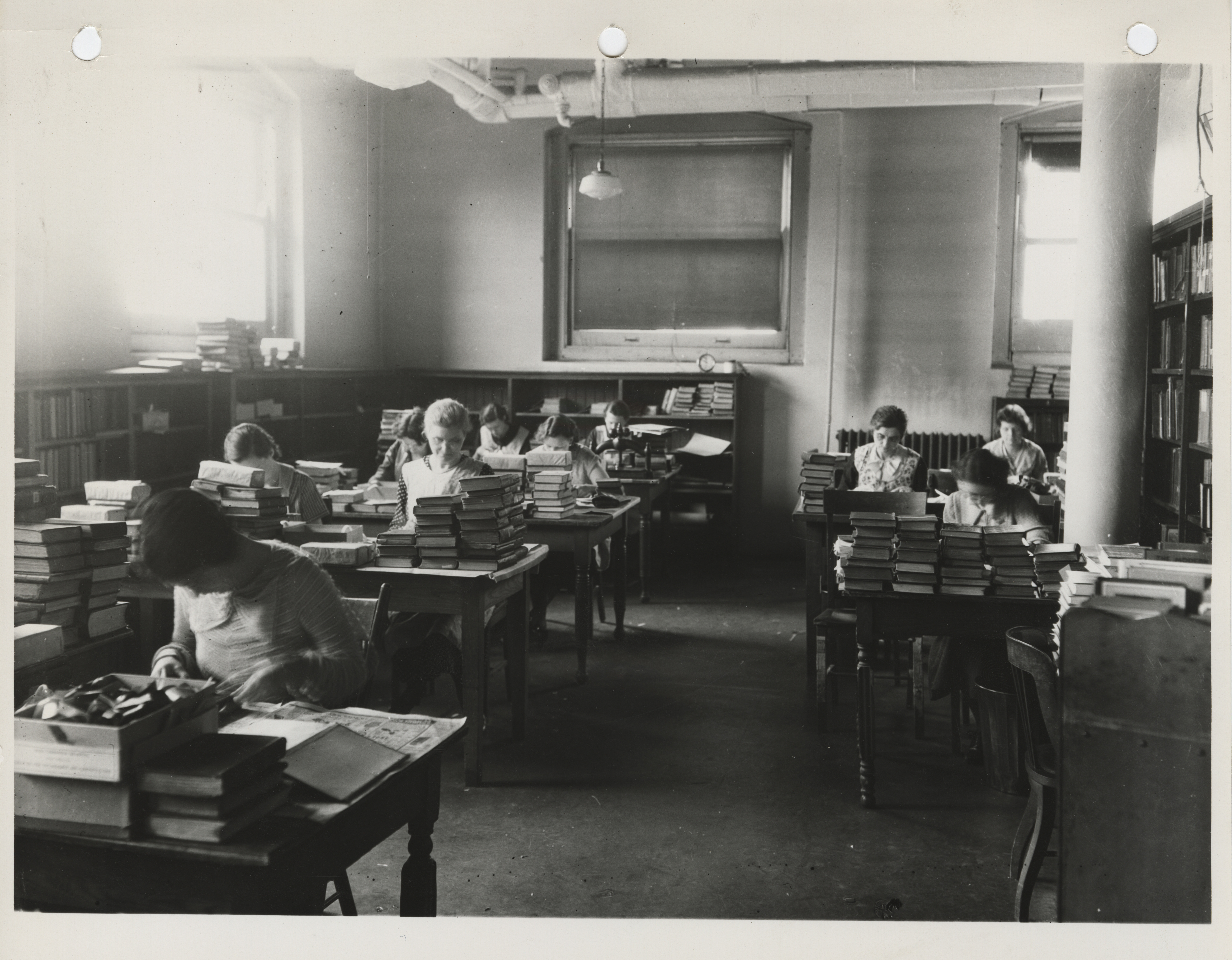 - Book Binding--Handicraft. Polk County. Des Moines. Book Binding and Repair at City Library. Project 155. (1 b/w photograph), 1937