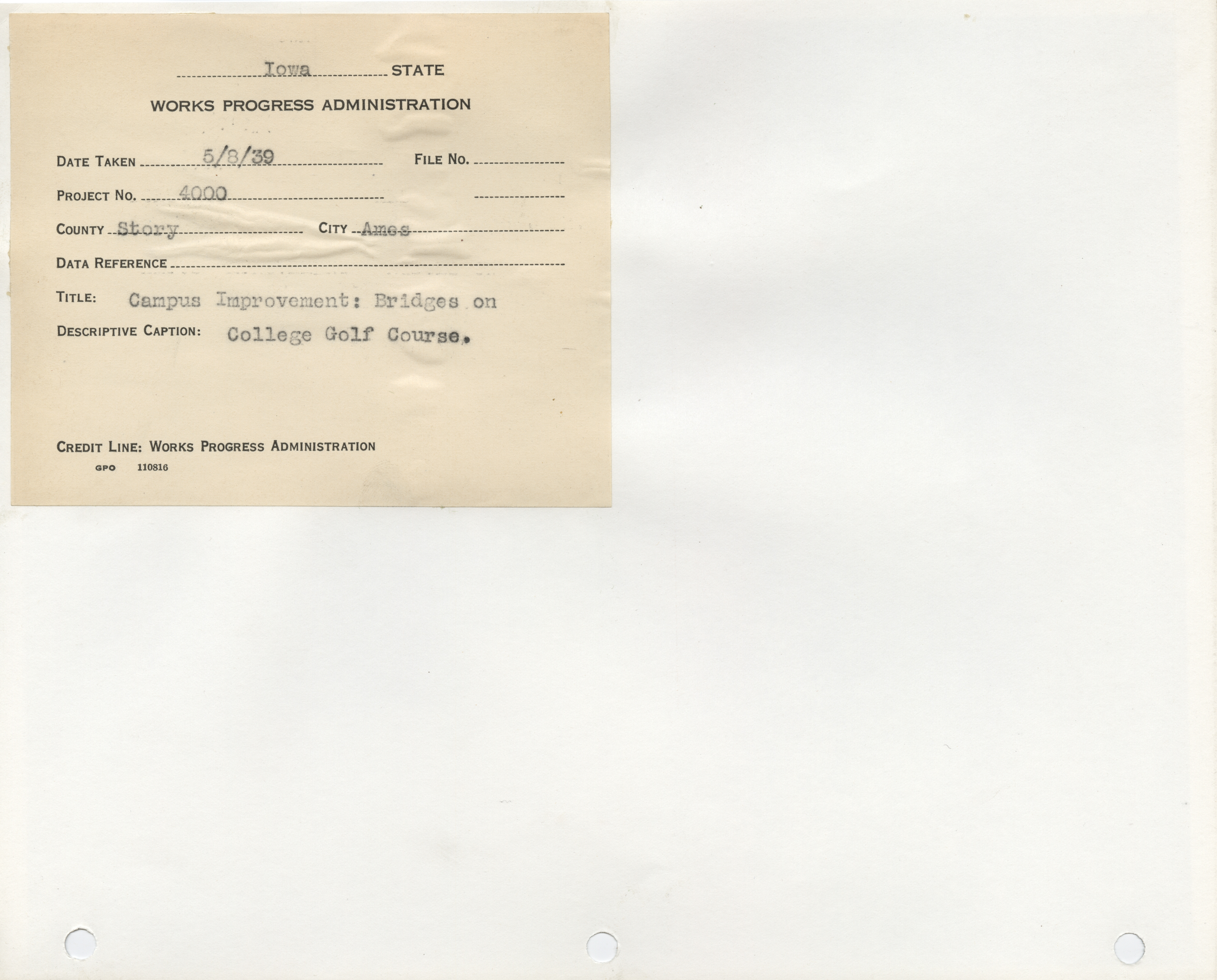 - Campus Improvements. Iowa State University, Ames. College Golf Course, Bridges. Project 582. (6 b/w photographs), 1936-1939, undated