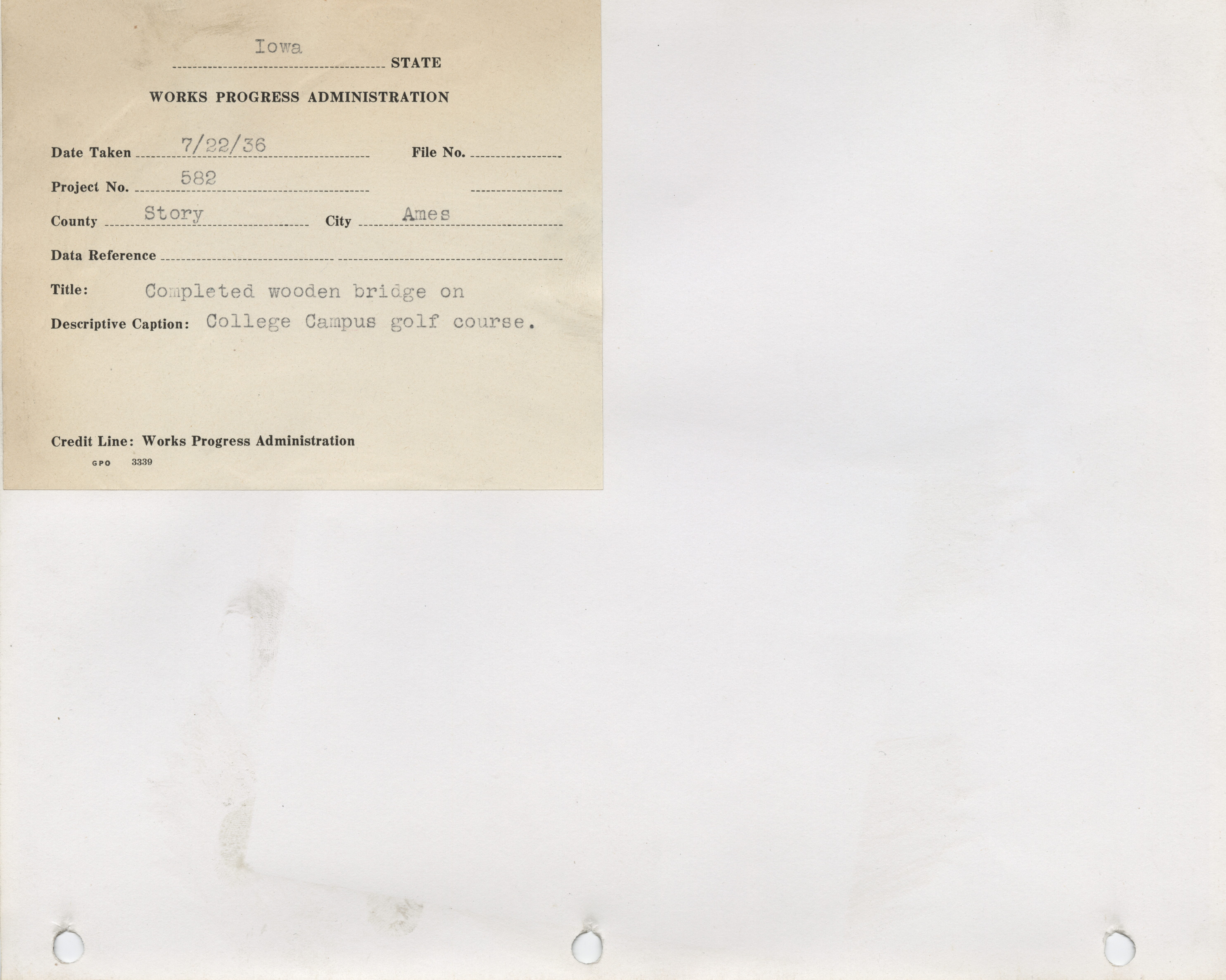 - Campus Improvements. Iowa State University, Ames. College Golf Course, Bridges. Project 582. (6 b/w photographs), 1936-1939, undated