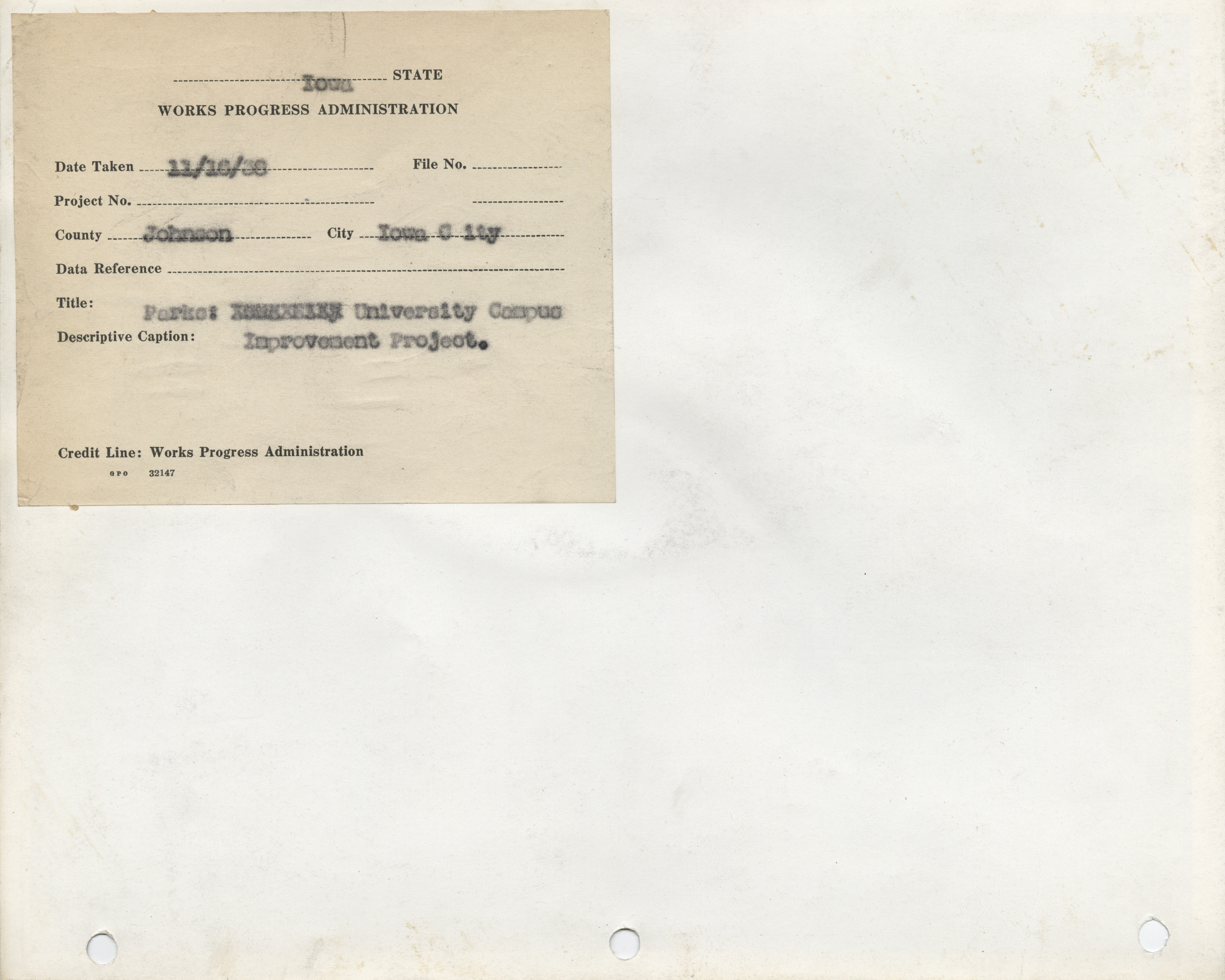 - Campus Improvements. University of Iowa, Iowa City. University Campus Improvement Project. (2 b/w photographs), 1938
