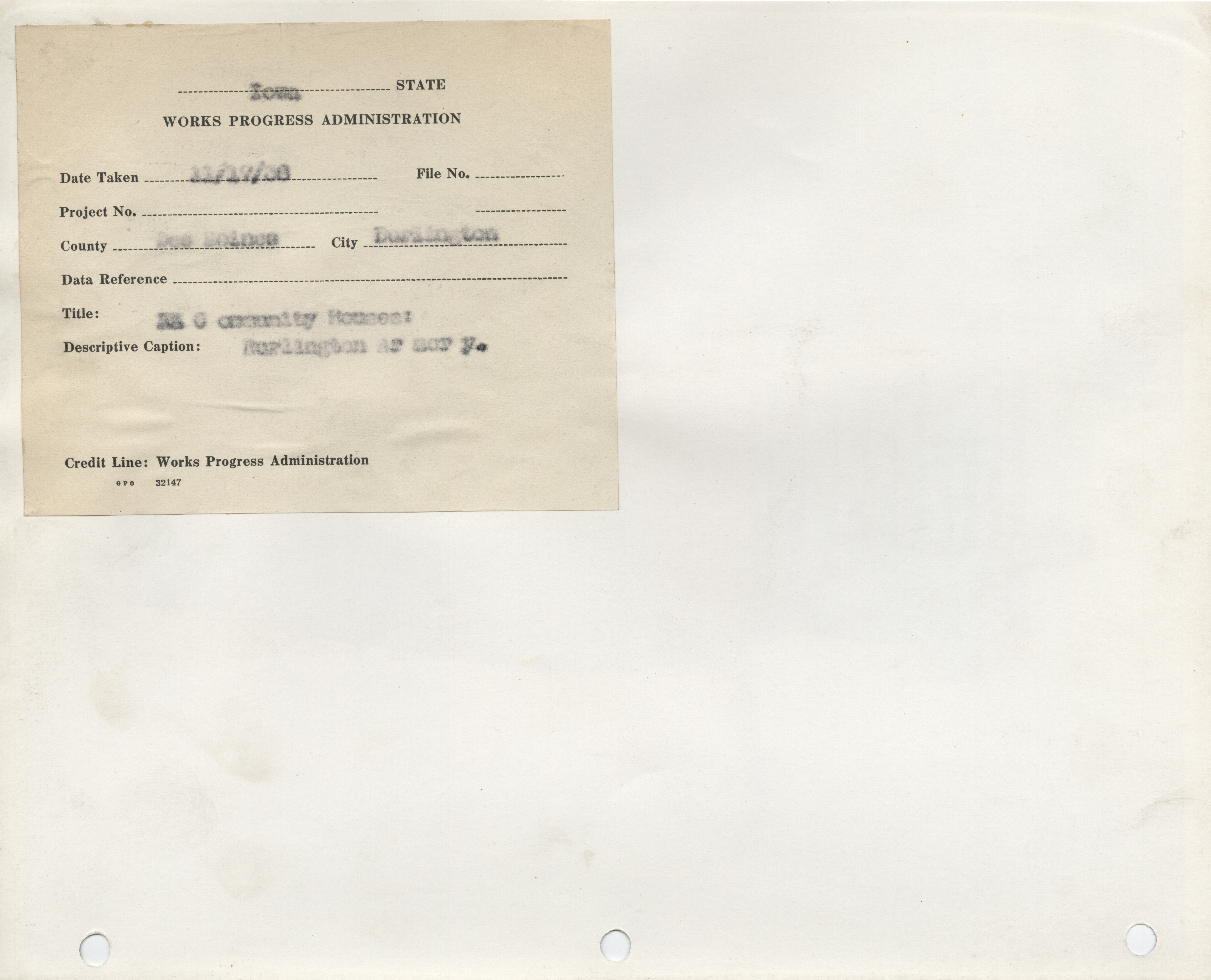 - Community Buildings. Des Moines County. Burlington. Burlington Armory. (2 b/w photographs), 1938