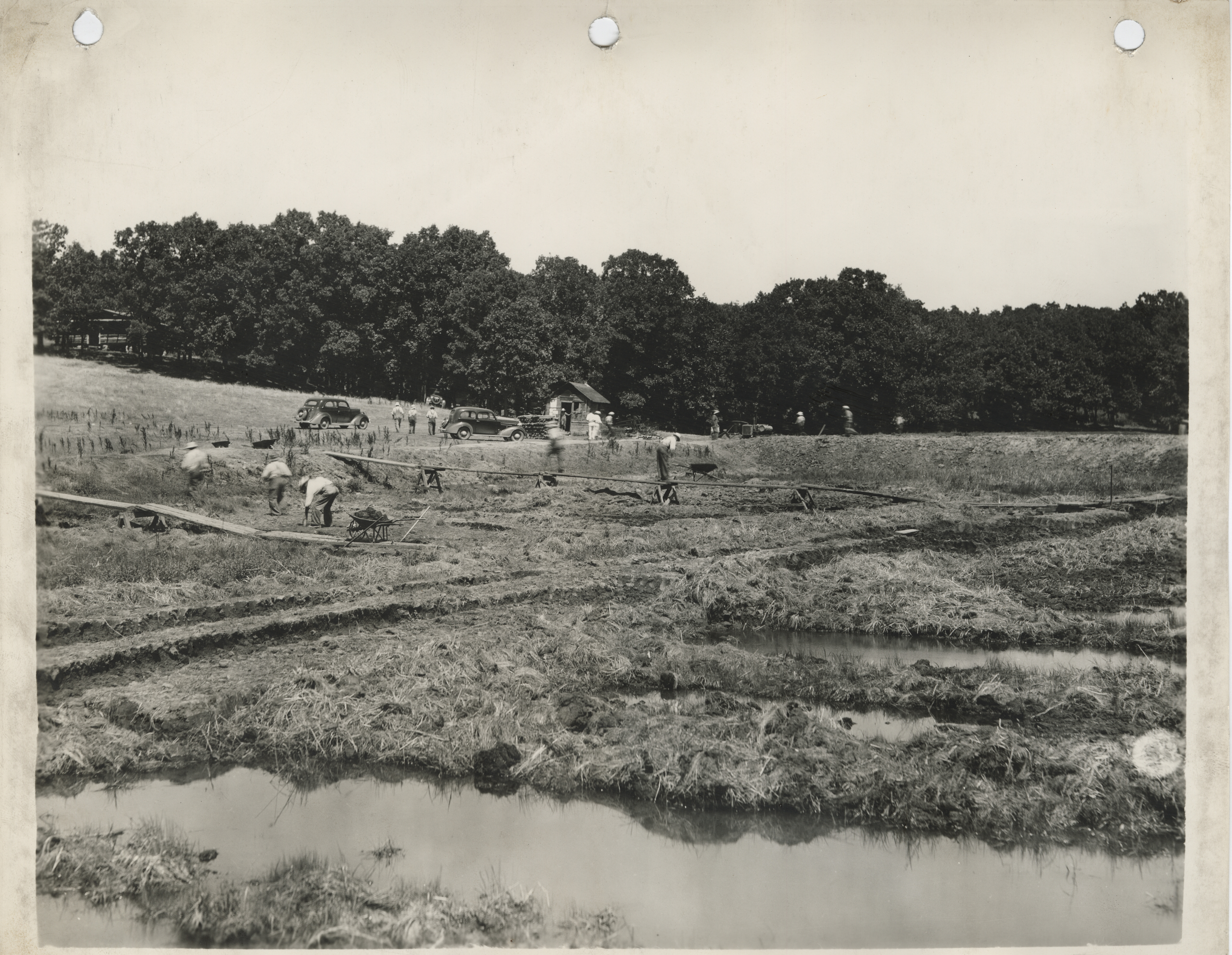- Photograph of people working at the fish rearing ponds north of Cresco in Howard County